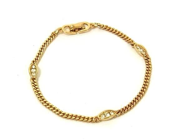 1円 ■美品■ ChristianDior クリスチャンディオール ヴィンテージ ラインストーン ブレスレット アクセサリー ゴールド系 FS6542