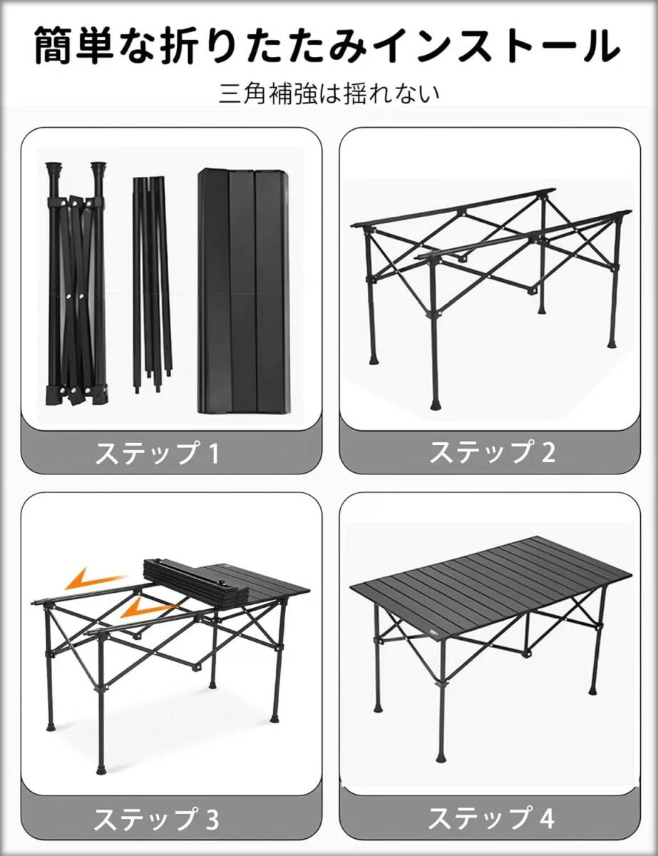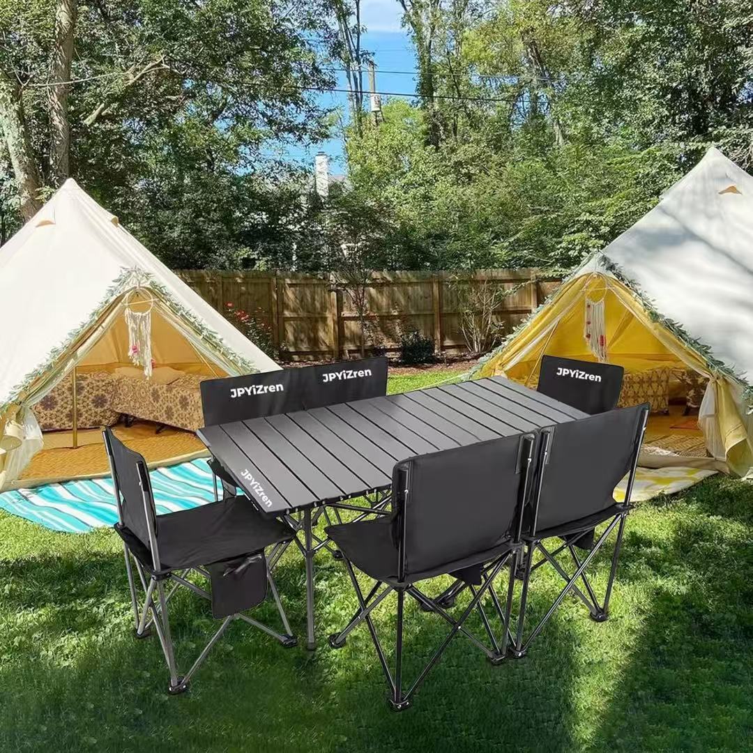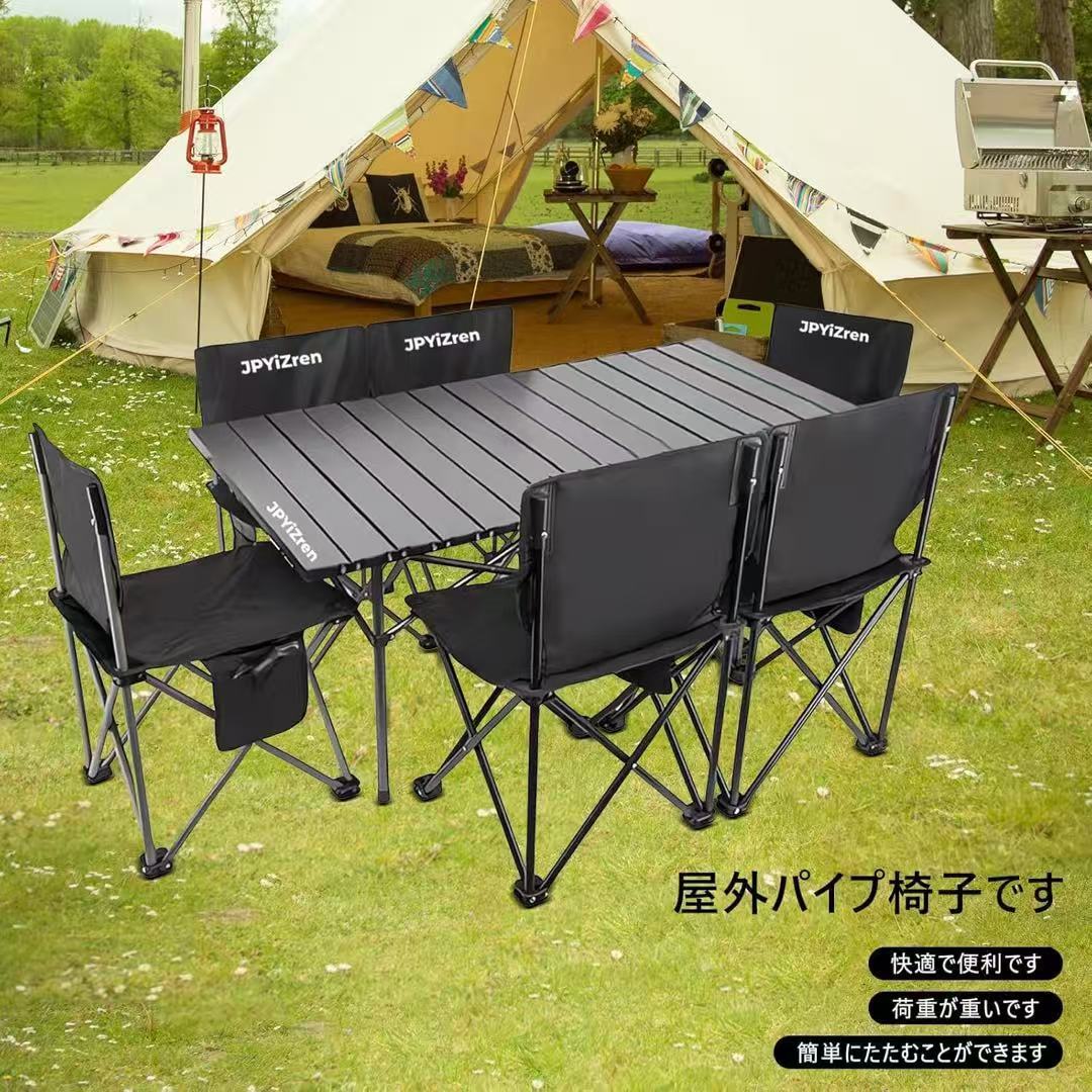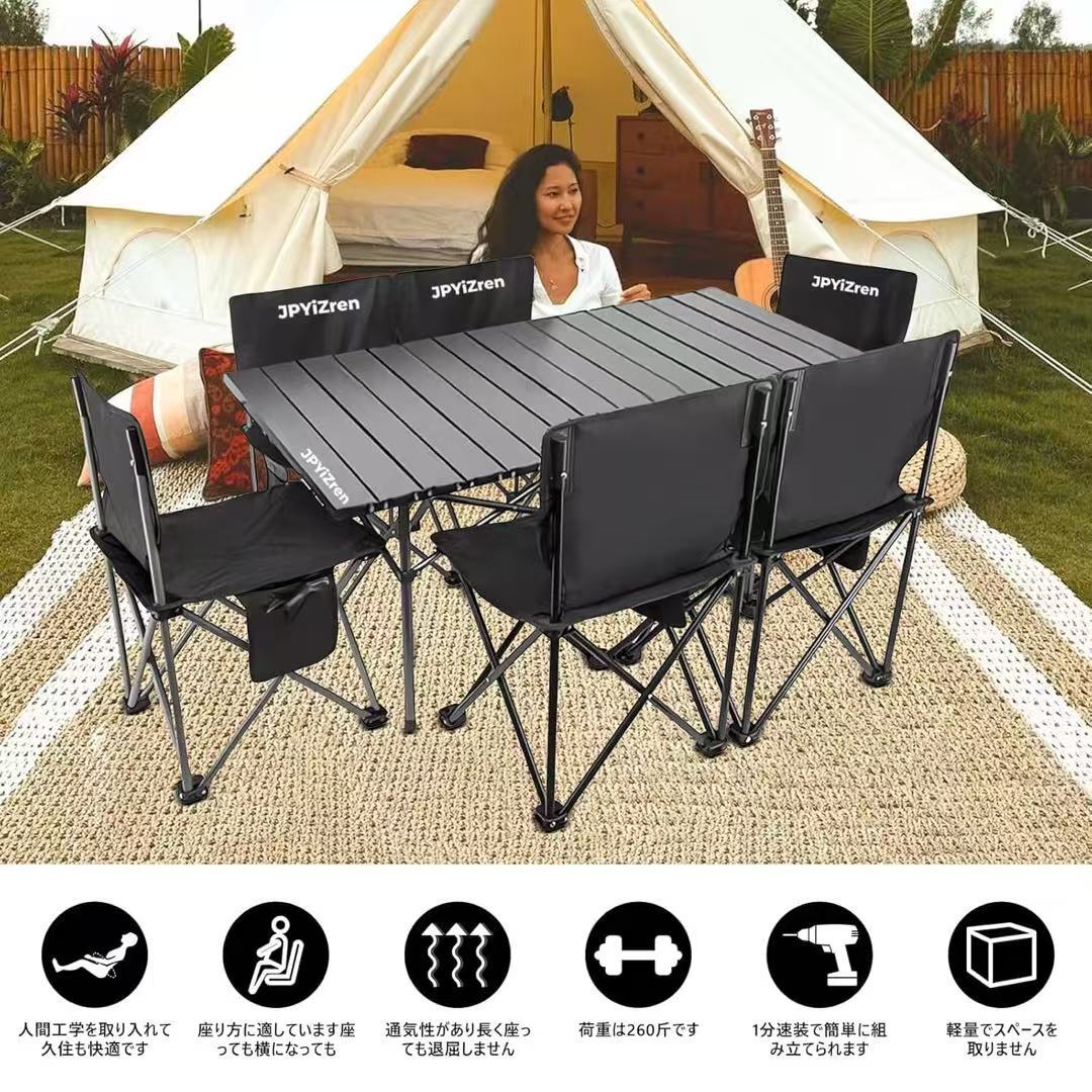 軽量で持ち運びやすい:折りたたみテーブル&チェアセットは、軽量設計で持ち運びや収納が簡単です。折りたたむとコンパクトになり、携帯用バッグも付属しているため、いつでもどこでも屋外活動を楽しむことができます。バーベキューやキャンピングカー旅行、アウトドアでの食事にも便利です