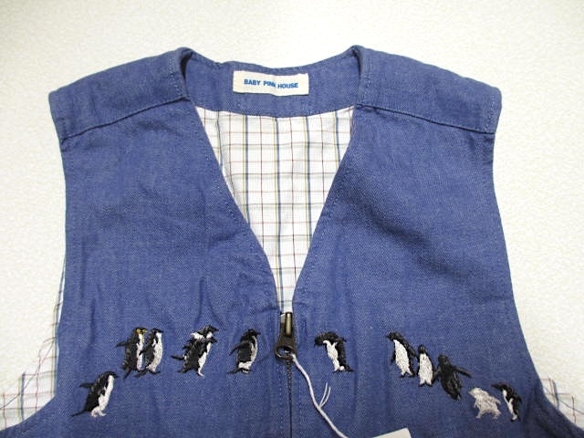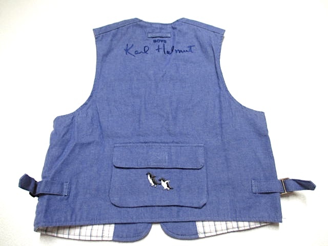 ボーイズカールヘルム ペンギン刺繍入り2重ポケットジッパーベスト L120㎝ ブルー 経年未着 発売時定価¥17,000