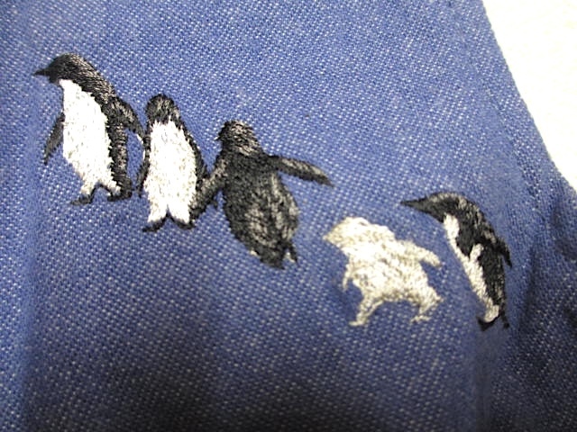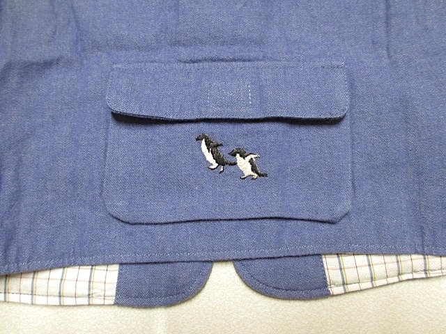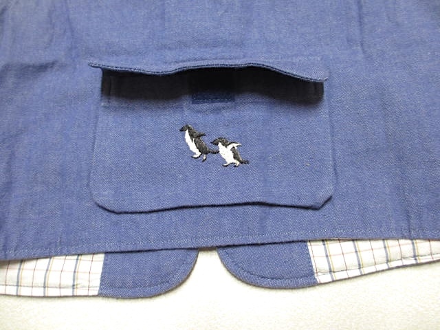 ペンギン刺繍入り2重ポケットジッパーベスト