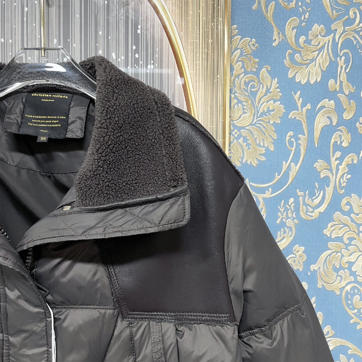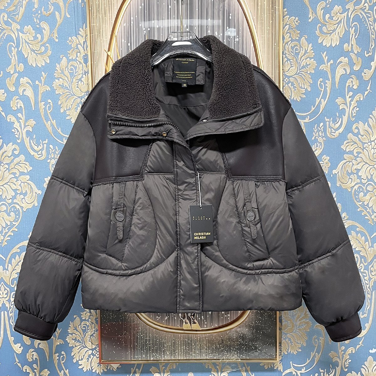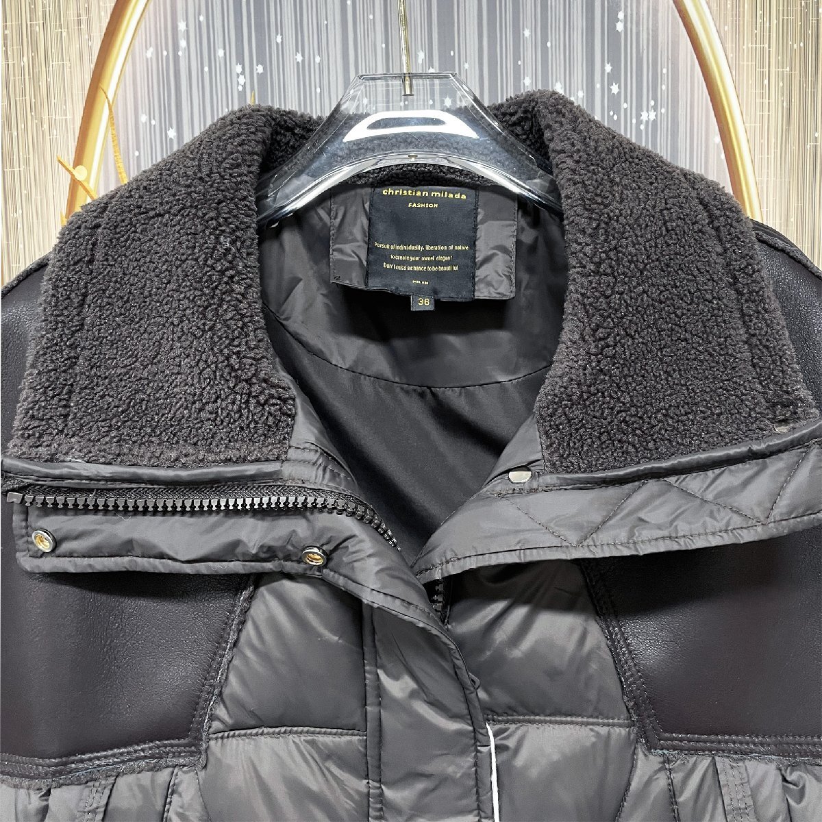 定価10万★christian milada・ミラノ発・ダウンジャケット★軽量 防寒 防風 ふわふわ 高級 切替 ショット丈 ゆったり コート レディース M/36サイズ