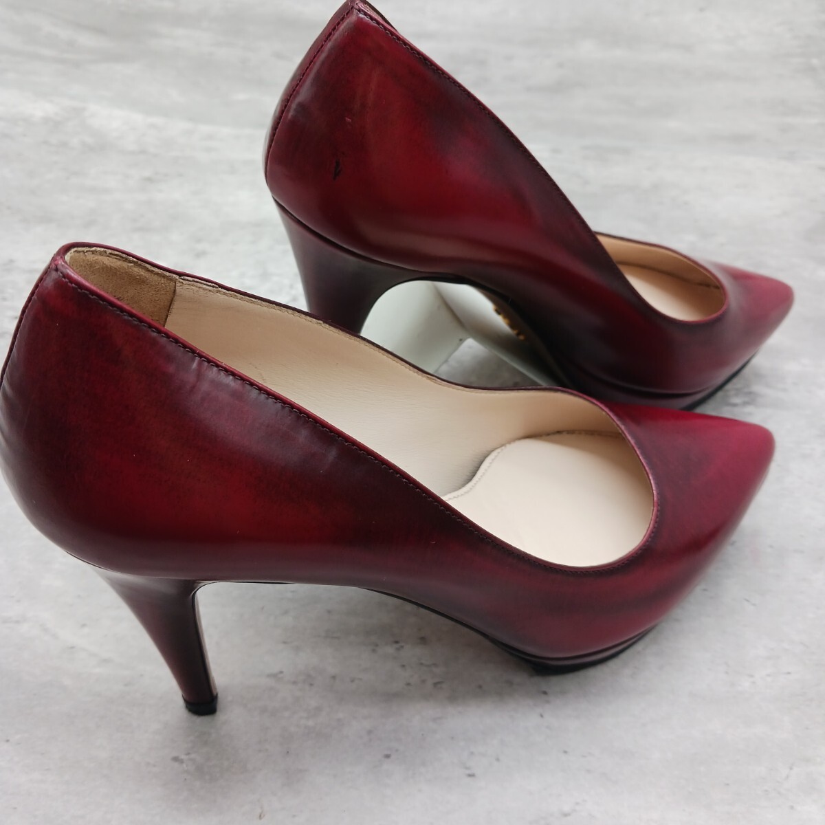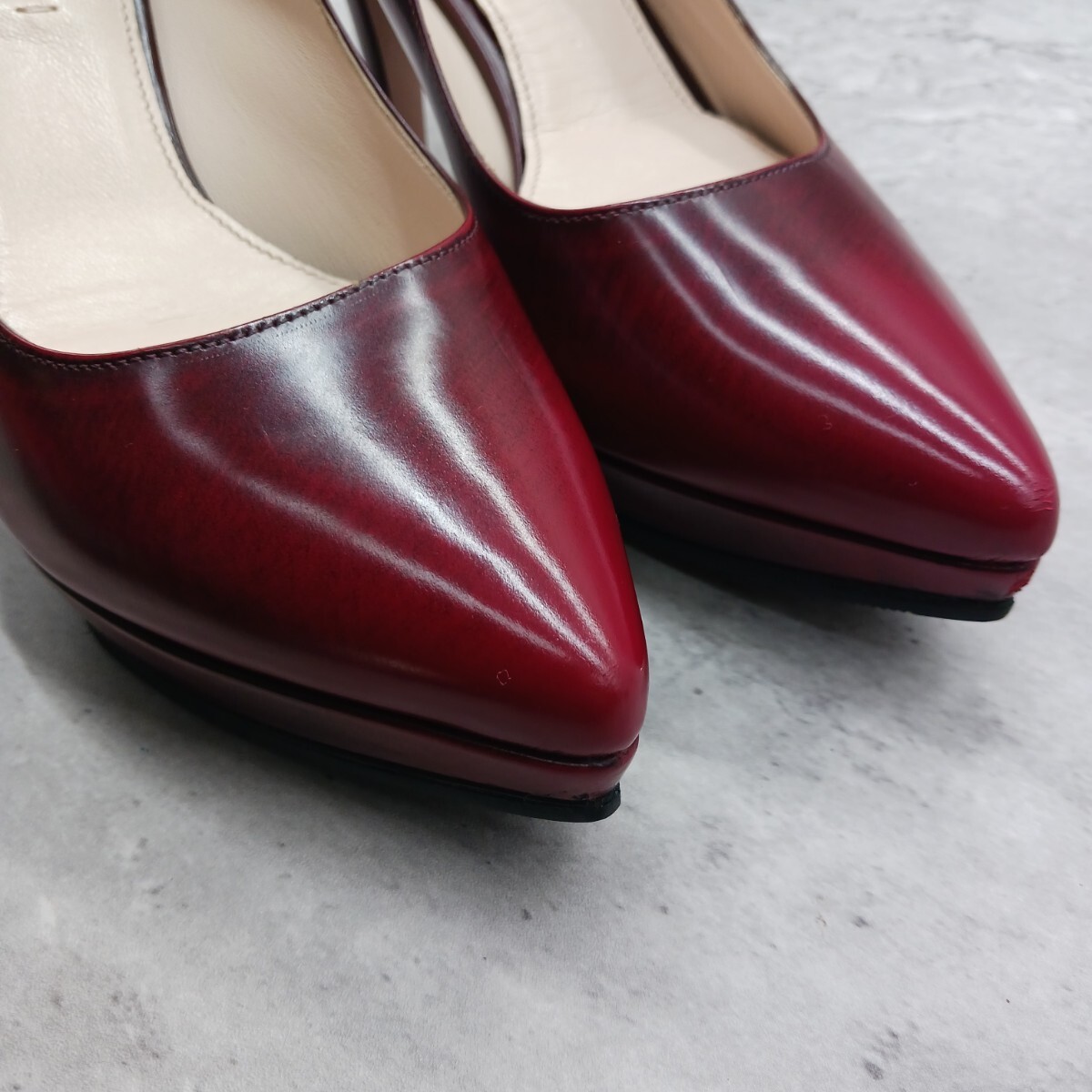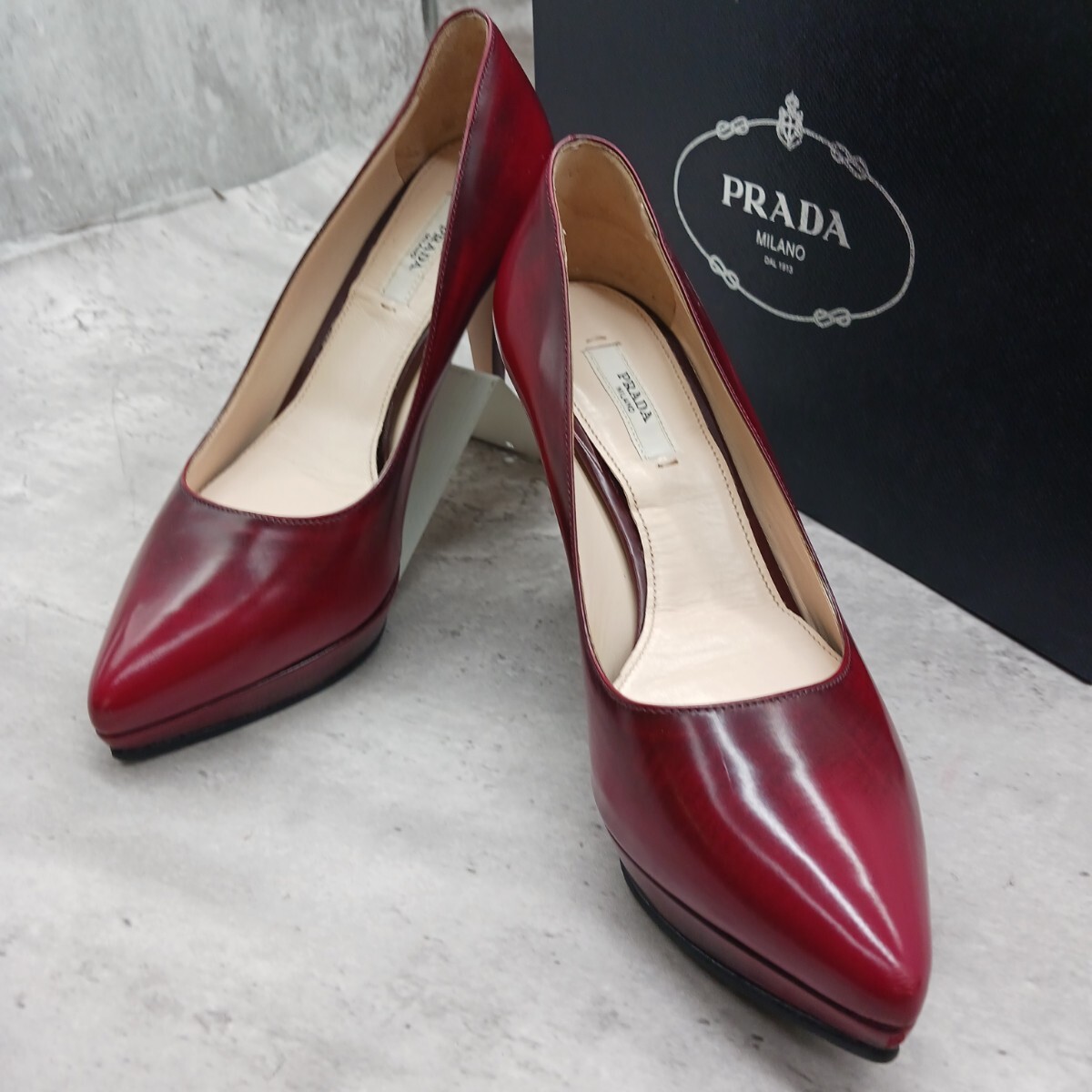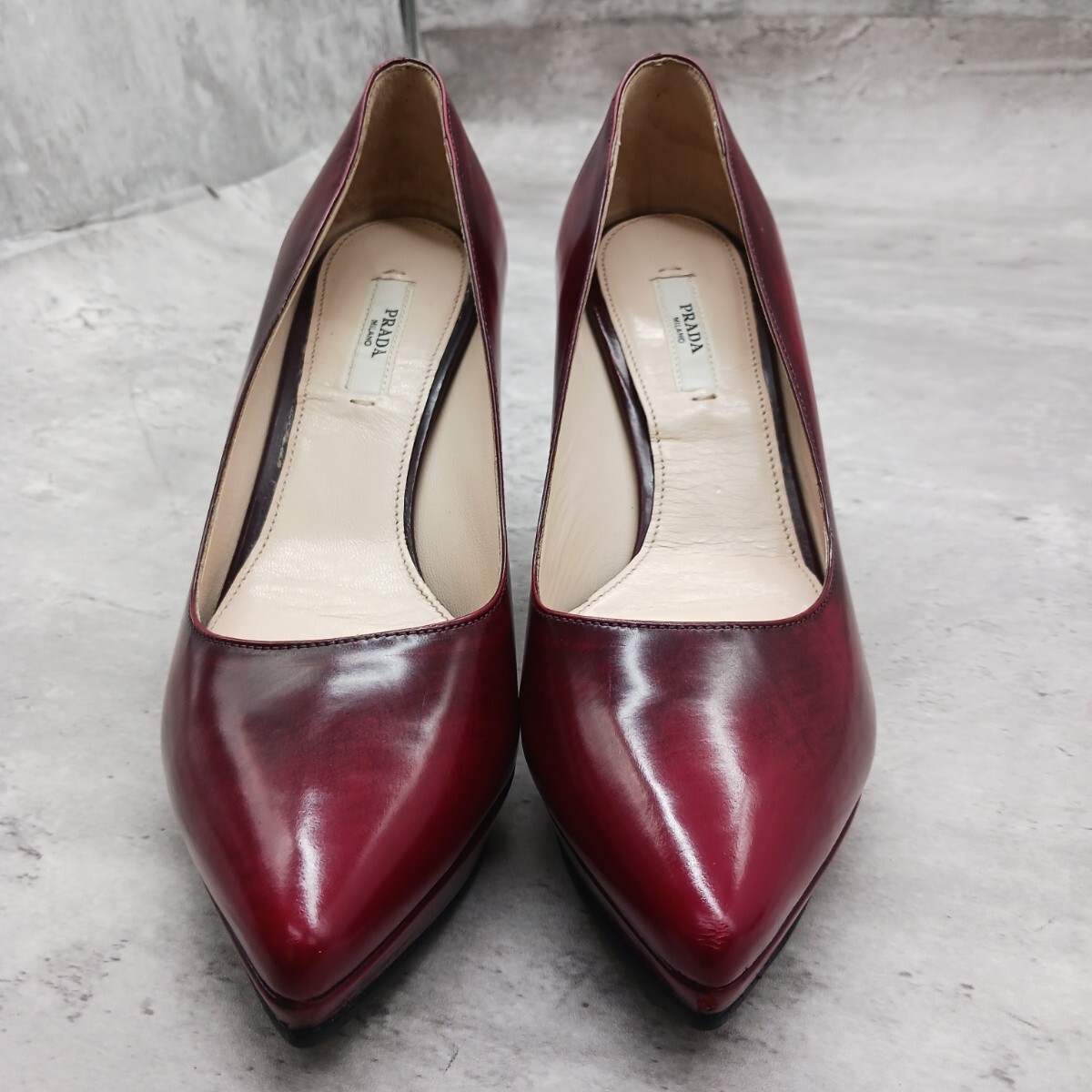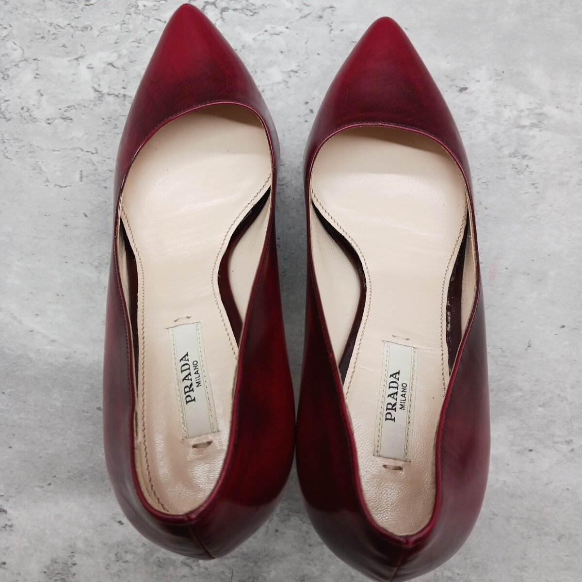 極美品 PRADA プラダ レディース レザー パンプス ワインレッド 36