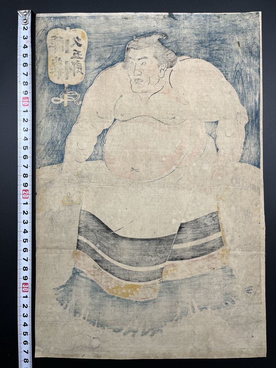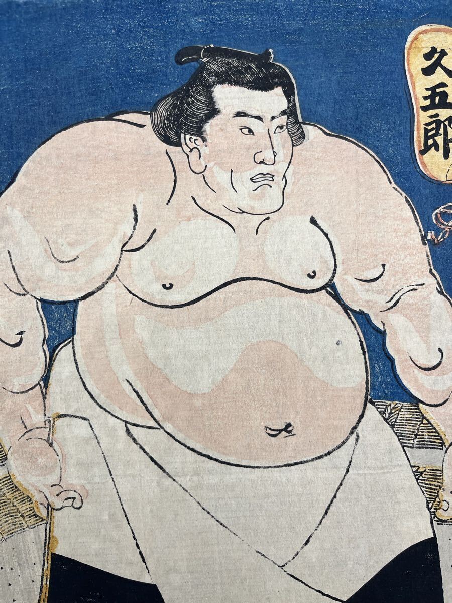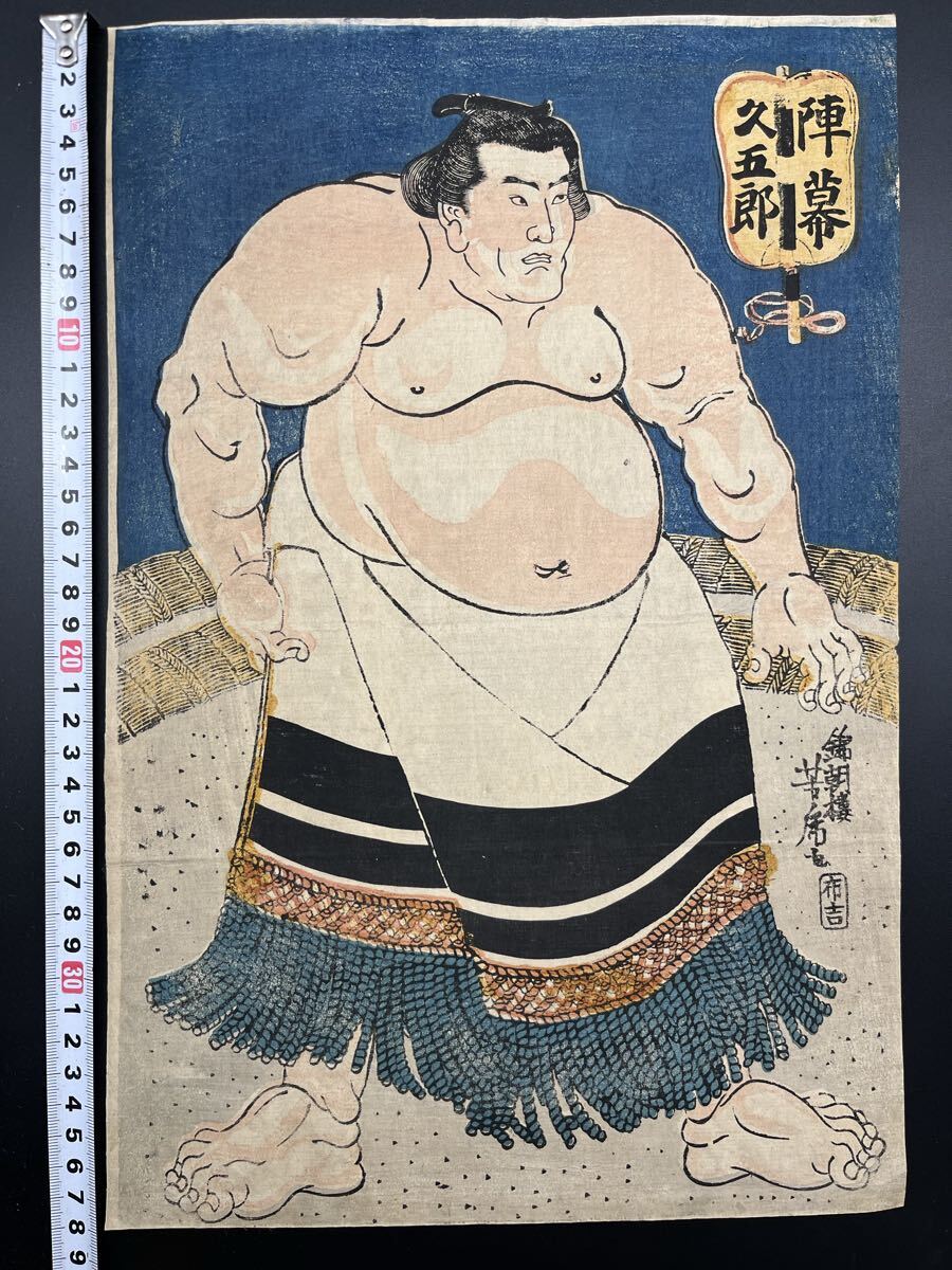 【真作】相撲!本物浮世絵木版画 歌川芳虎「陣幕久五郞」江戸期 力士 武者絵 錦絵 大判 保存良い