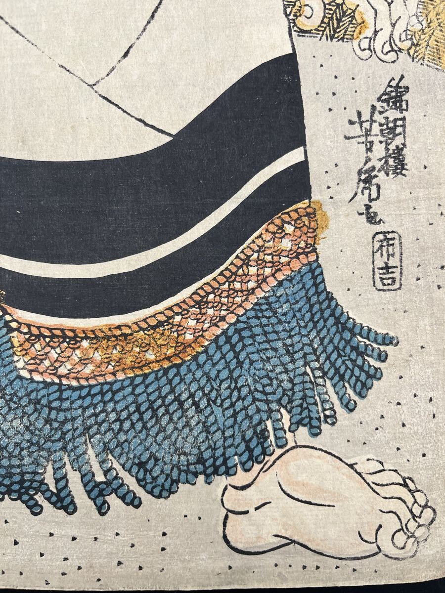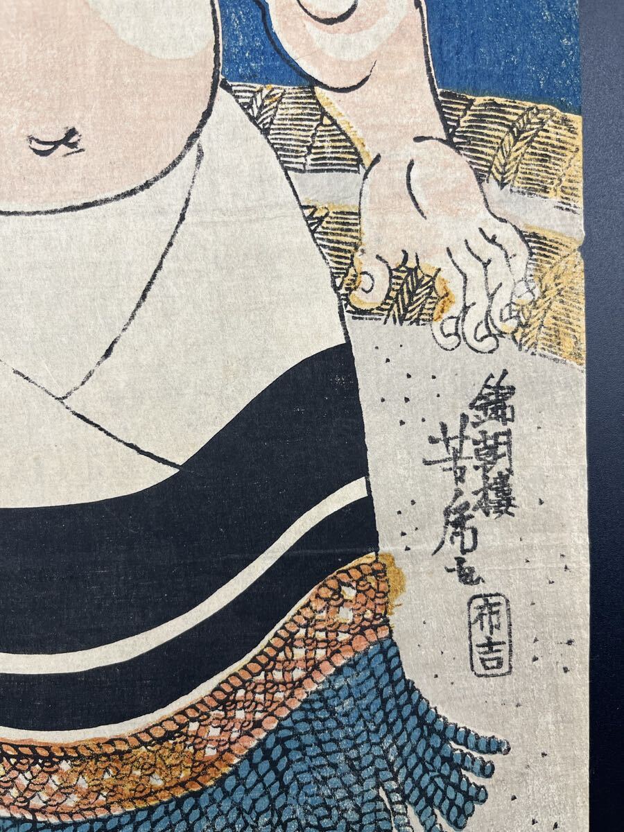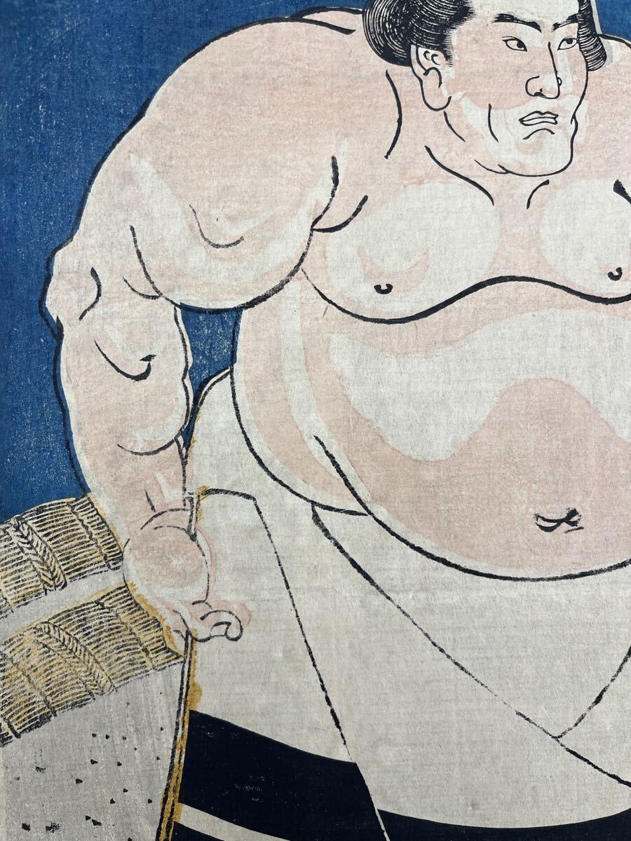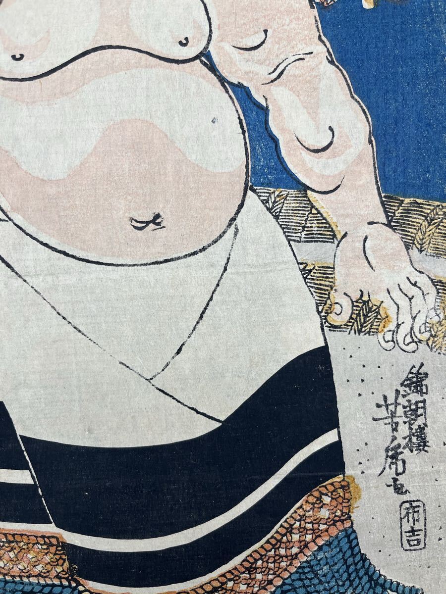 【真作】相撲!本物浮世絵木版画 歌川芳虎「陣幕久五郞」江戸期 力士 武者絵 錦絵 大判 保存良い