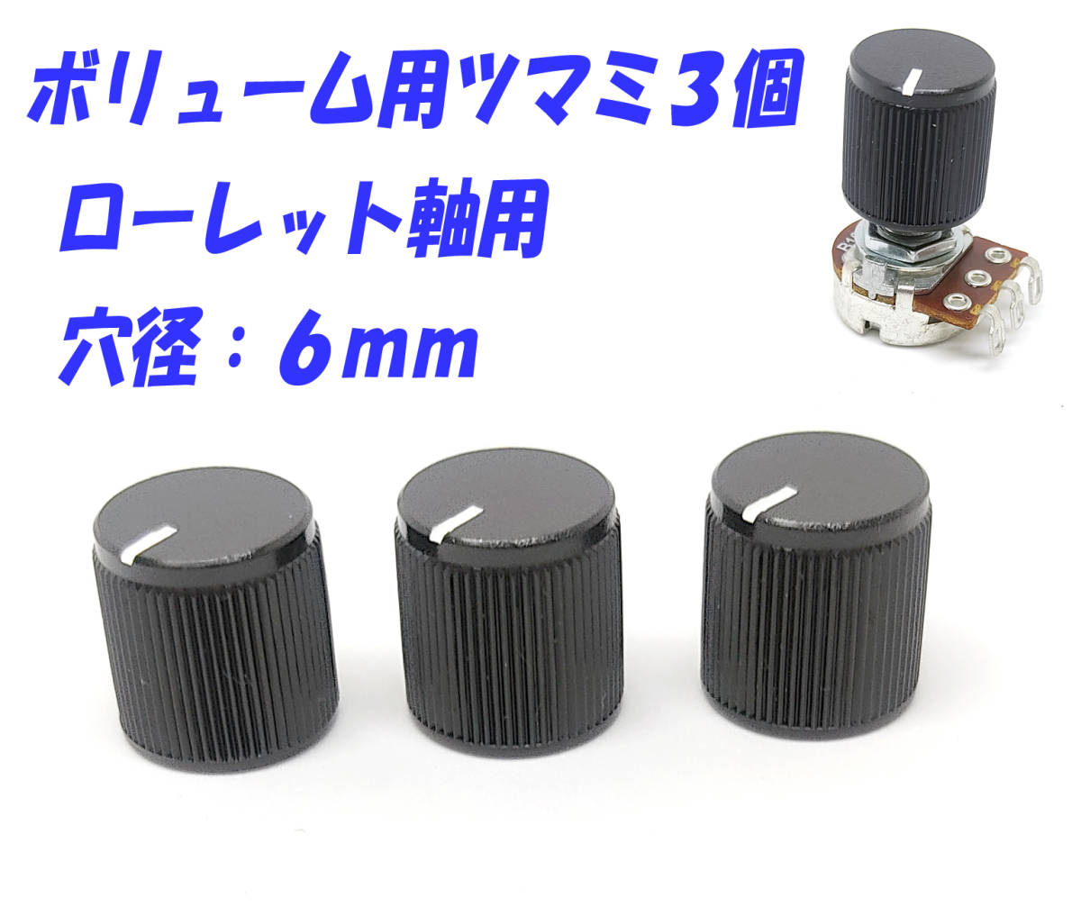 16mm 用 ボリューム つまみ 3個セット 小型(Φ16) 汎用ボリューム用 穴径 6mm 取り付け軸 ローレット仕様用 ツマミ ノブ 匿名配送込