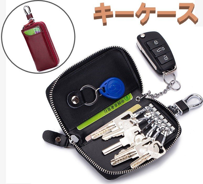 キーケース 本革 レッド レザー 鍵入れ 牛革 シンプル レザーキーケース キーリング キーフック n521