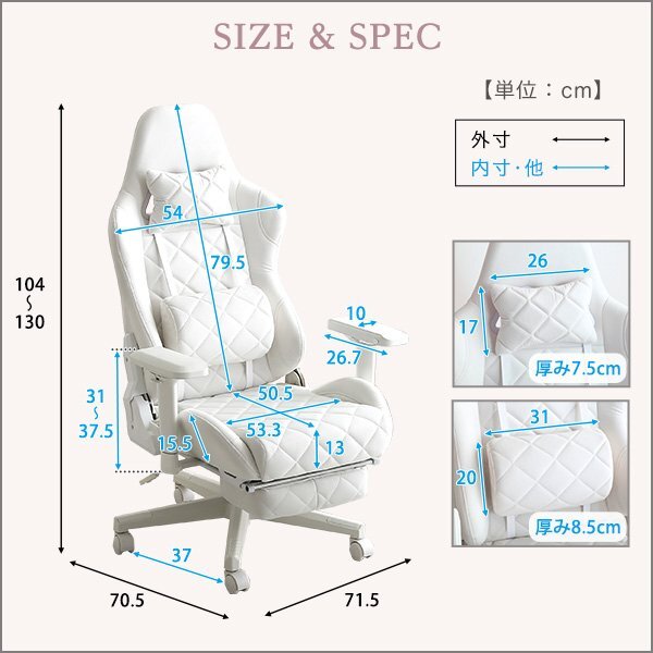 カジュアル感のあるゲーミングチェアオットマン付き! スエード調の生地で肌ざわりが良く、長時間座っても疲れにくい商品で 最大155度まで背もたれを倒すことが出来る多くの機能を備えた商品です。 |