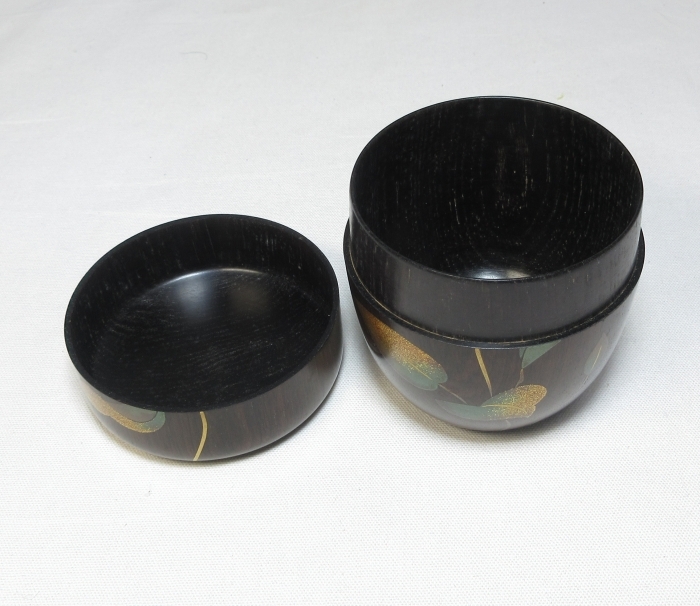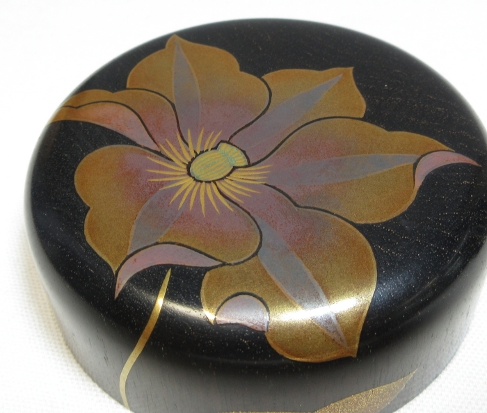 味のある木地に美しい鉄仙図の蒔絵が施された良品です。