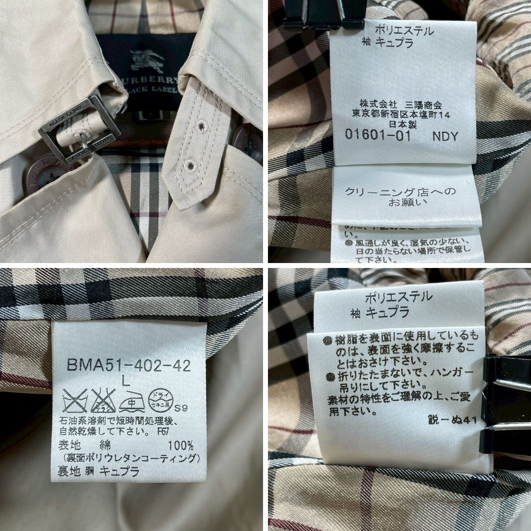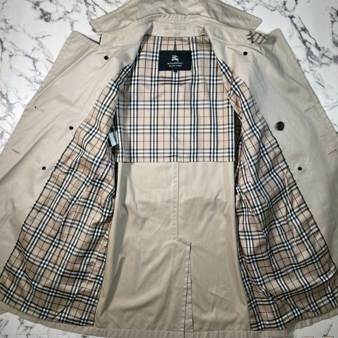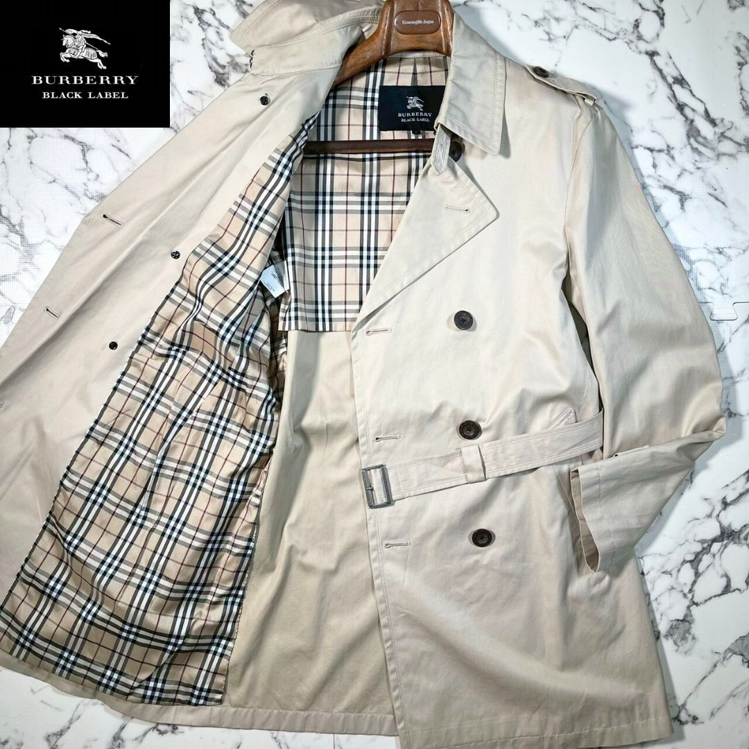 極美品/ノバチェック柄(L)●バーバリーブラックレーベル BURBERRY BLACK LABEL トレンチコート ベージュ ノバチェック 裏地 ベルト付 三陽
