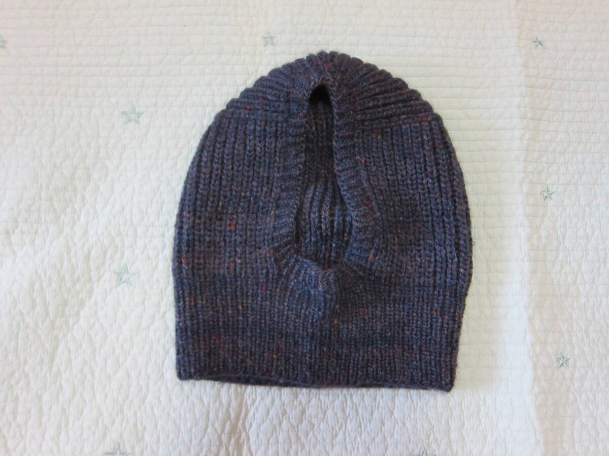 ハンドメイド手編み イタリア製毛糸 アルパカナイロンほか バラクラバ風フード ネイビー