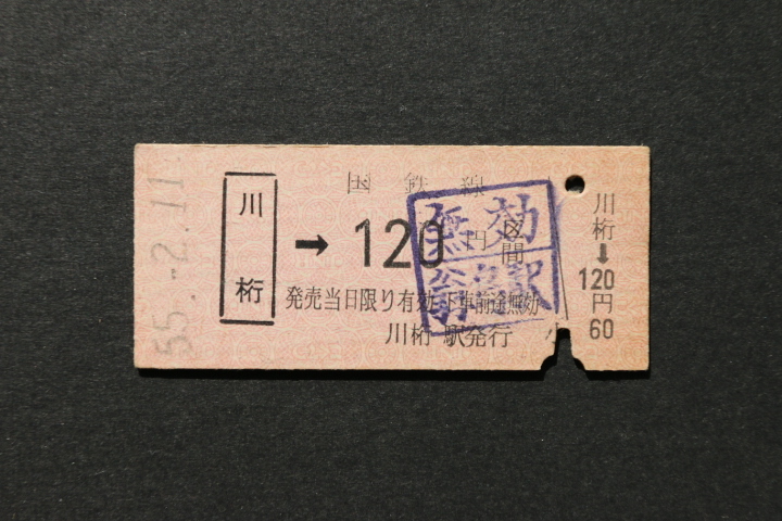 乗車券 川桁→120円区間