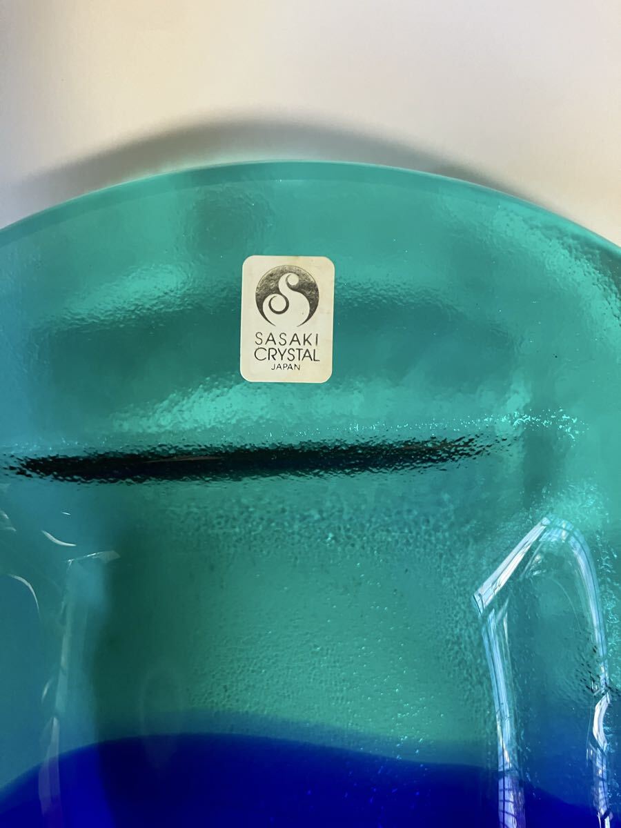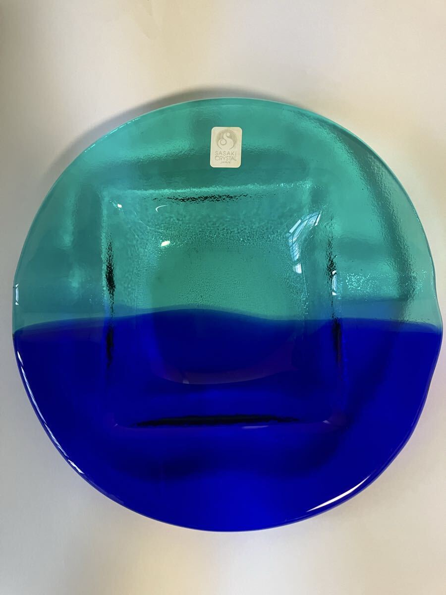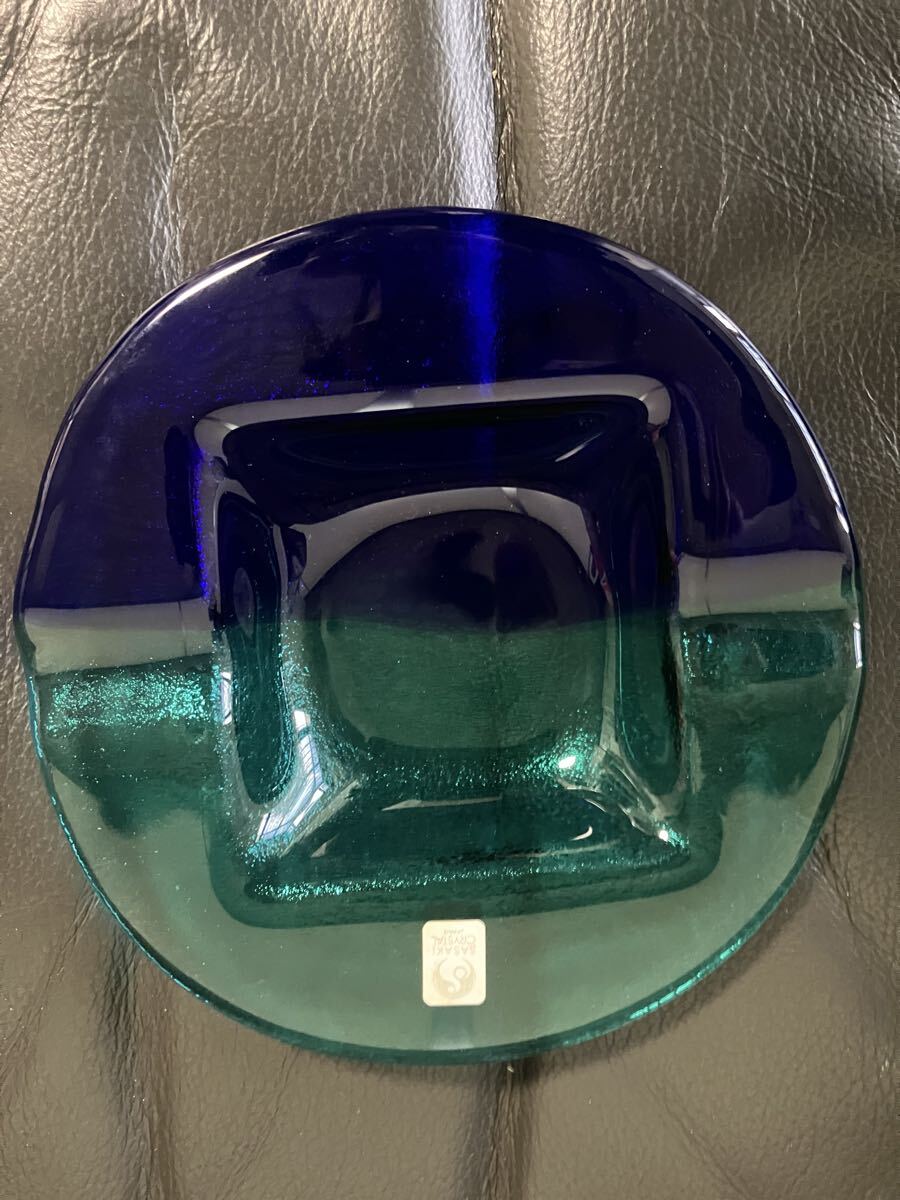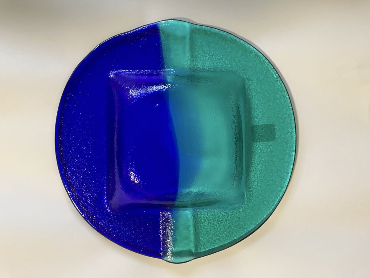 涼しげなガラス製でブルーとグリーンのバイカラーの灰皿です。