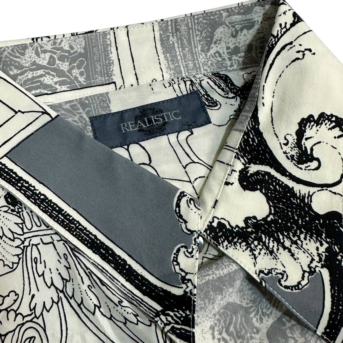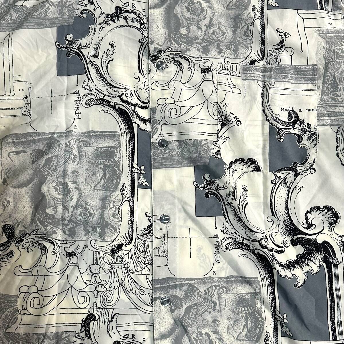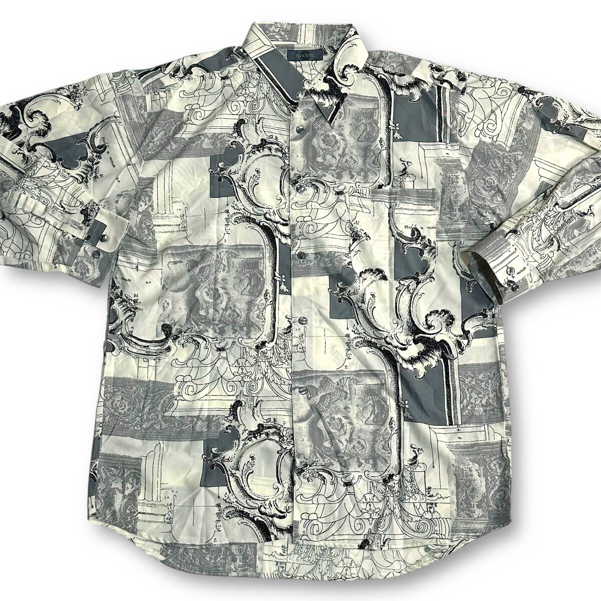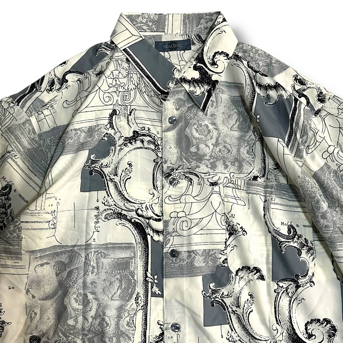 希少【REALISTIC】80s 90s VINTAGE 総柄 中世風 アートデザイン ビンテージ長袖ポリシャツ 古着ミックス 個性派 派手シャツ