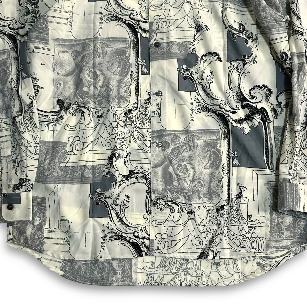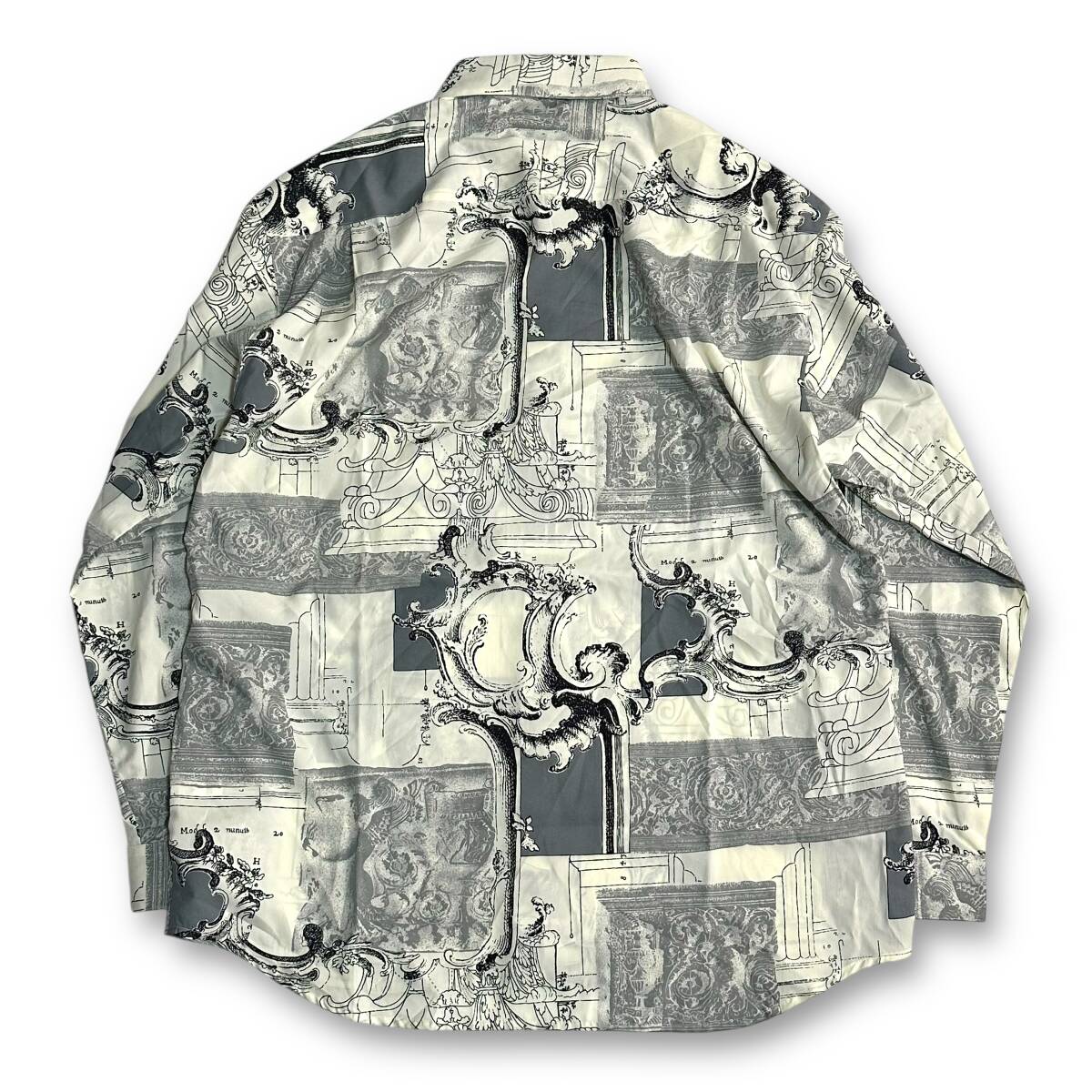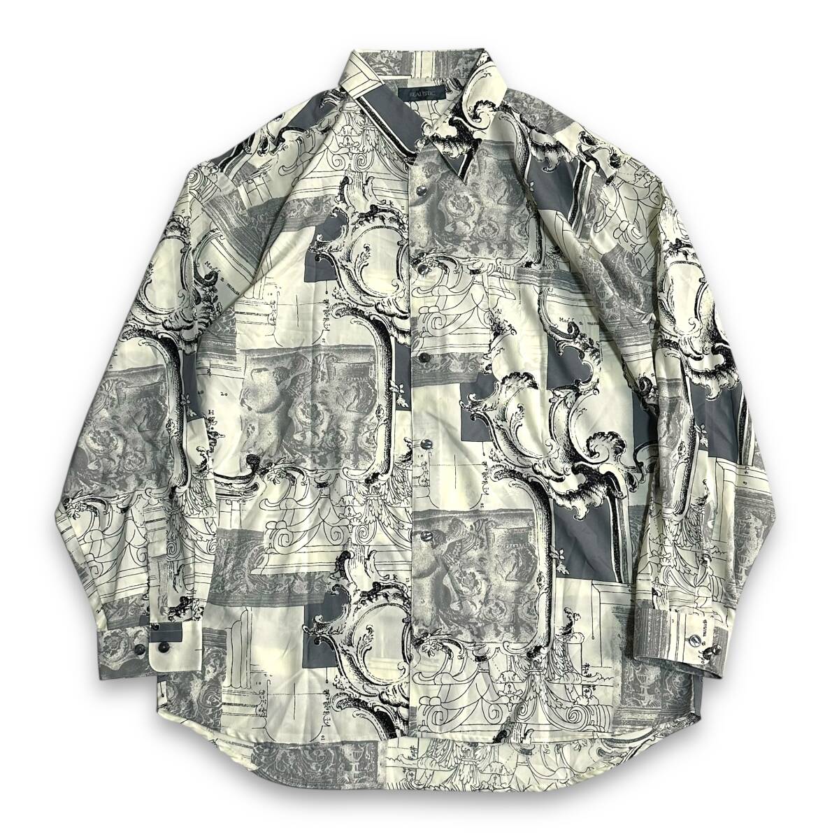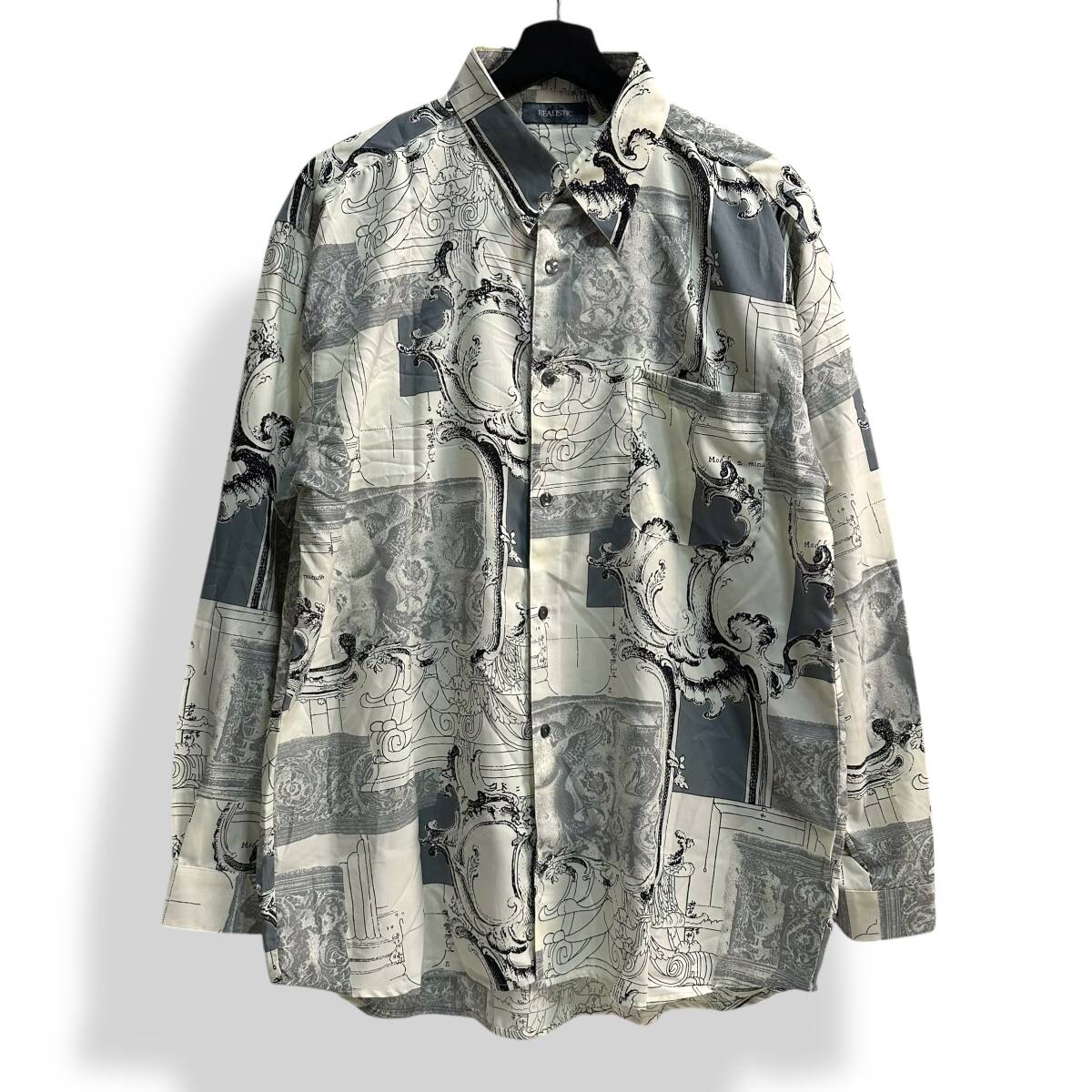 希少【REALISTIC】80s 90s VINTAGE 総柄 中世風 アートデザイン ビンテージ長袖ポリシャツ 古着ミックス 個性派 派手シャツ