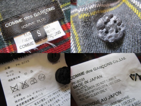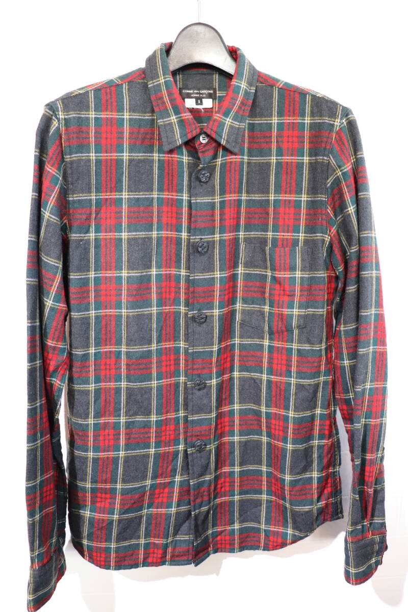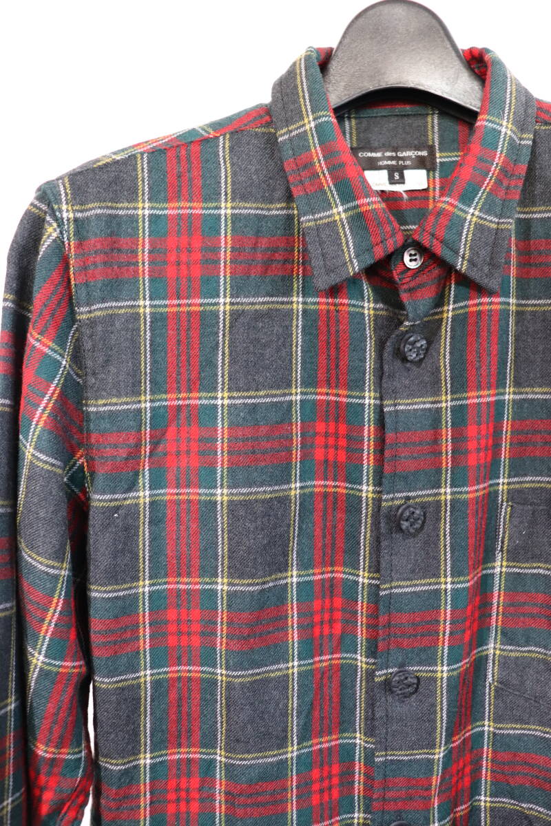 2012AW 即決 COMME des GARCONS HOMME PLUS コムデギャルソンオムプリュス 12AW タータンチェック柄 ウールシャツ ネルシャツ メンズS