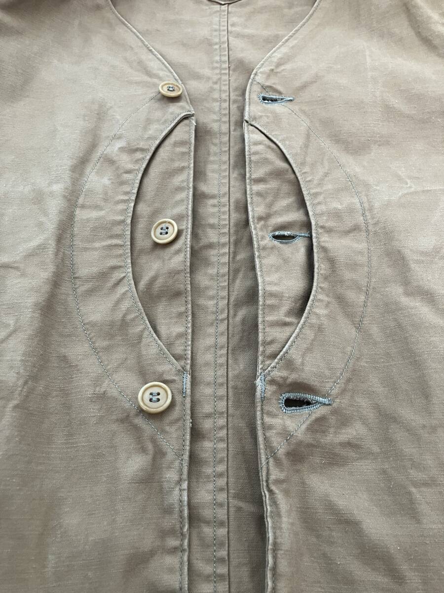 サイズ表記はM、カラーは濃い目のカーキです。(画像⑤タグと一緒の画像が色が近いかと思います。)