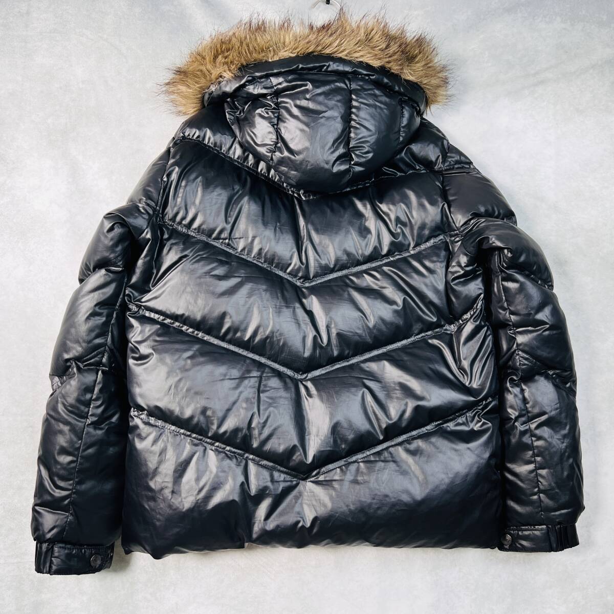 【美品・ポロクラブ】ダウンジャケット フェイクファー M ブラック 光沢