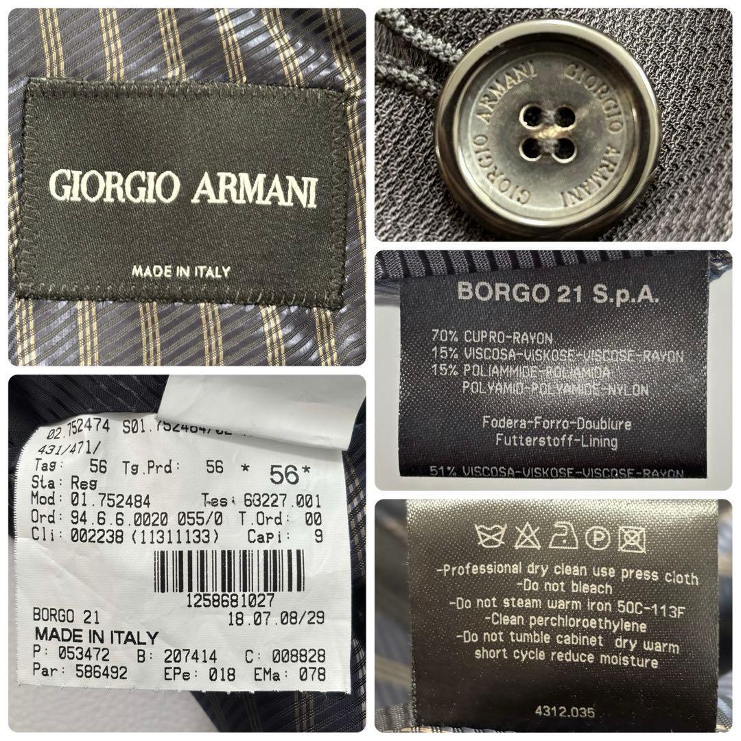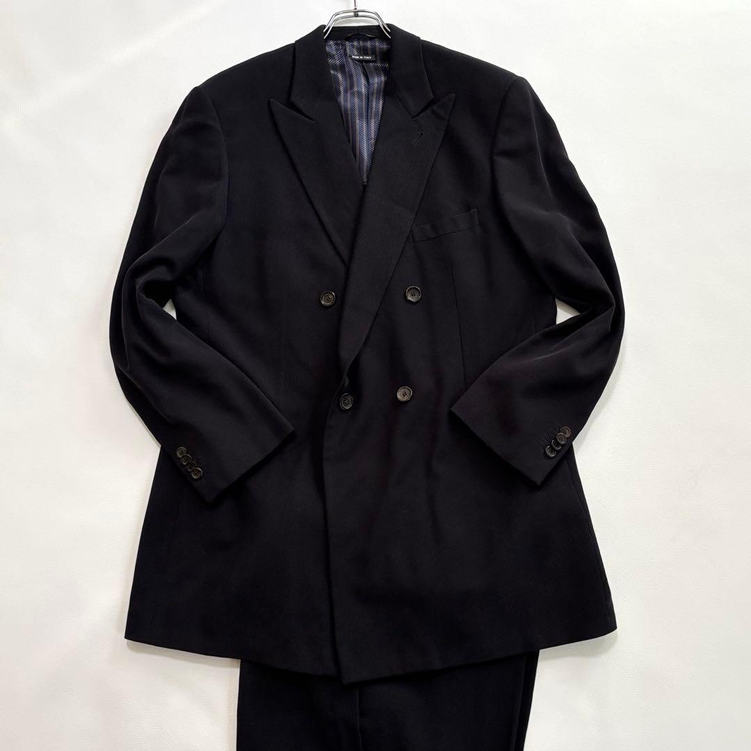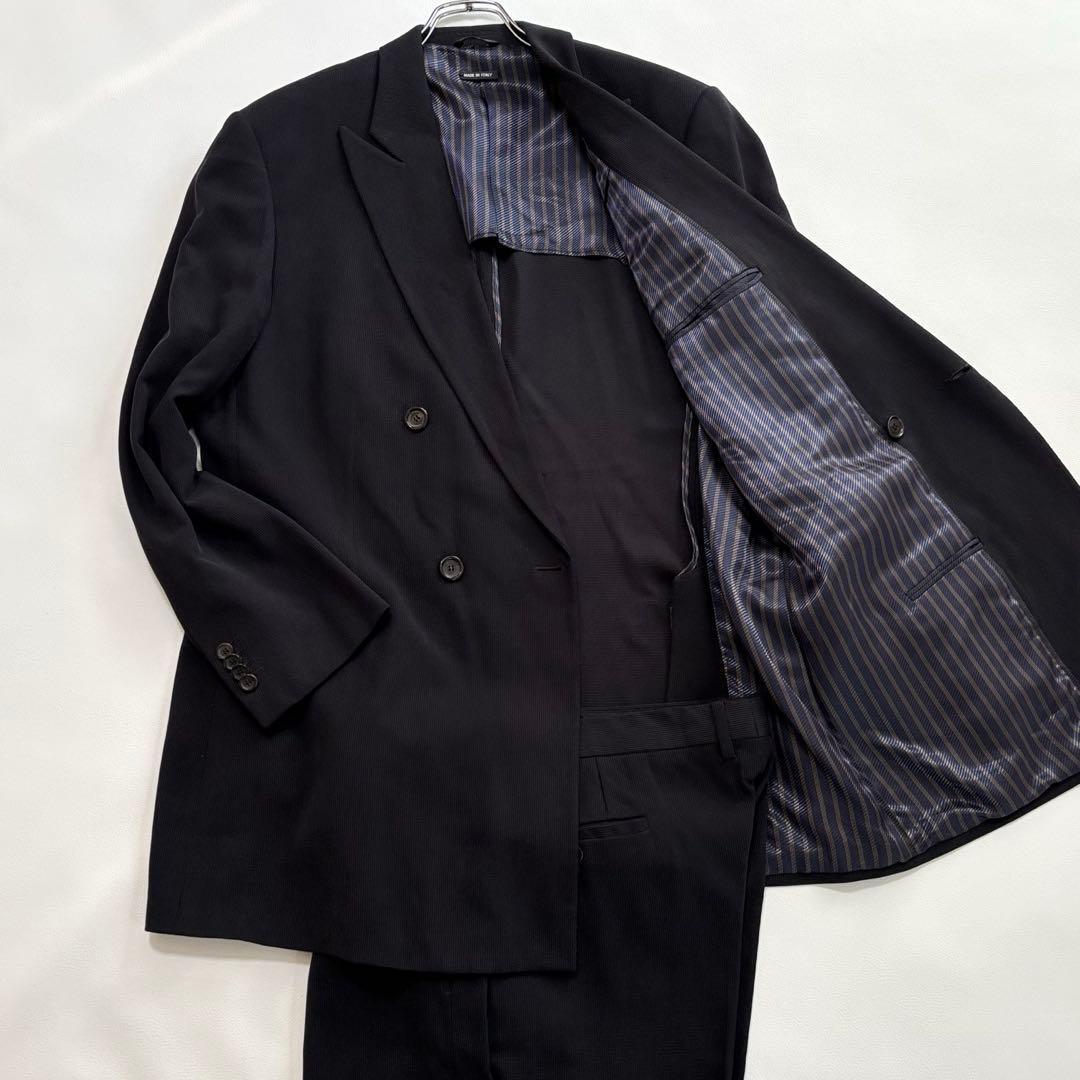 ジョルジオアルマーニ BORGO21[絶大な存在感 4XL]ダブル スーツ セットアップ 上下 ブラック 黒タグ 56号 イタリア製 ダブルレスト GIORGIO ARMANI