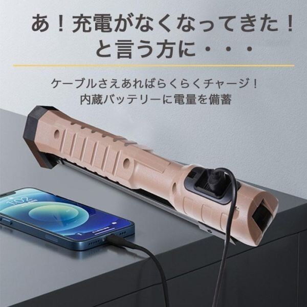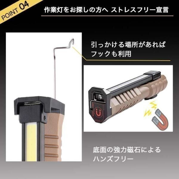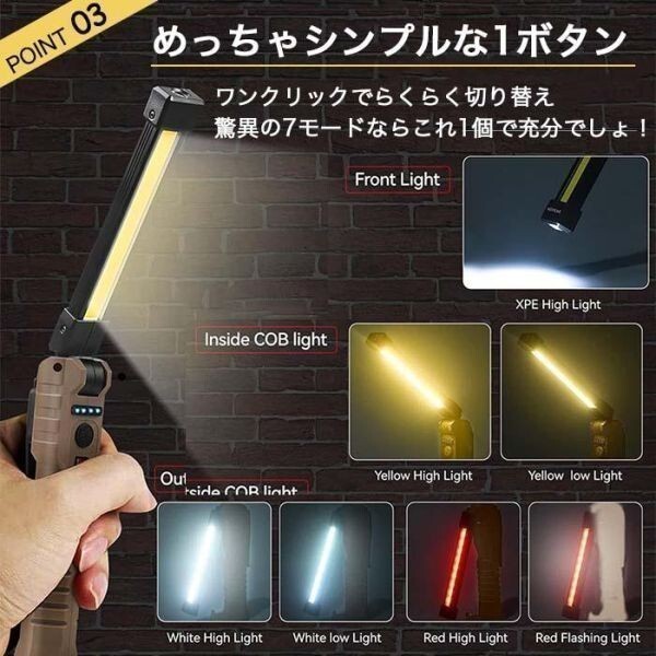 ワークライト led 充電式 懐中電灯 強力 軍用 ハンディライト 作業灯 折り畳み式 LEDライト USB 最強 cob 防水 (wthl0006) 6