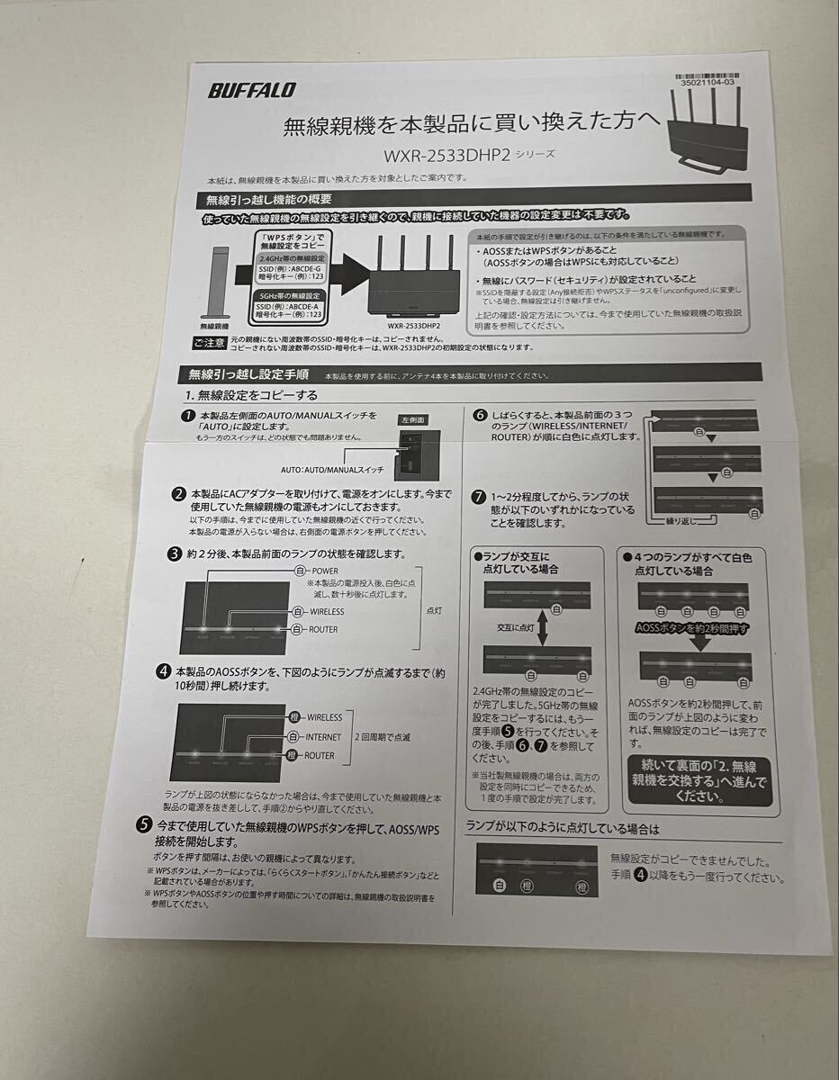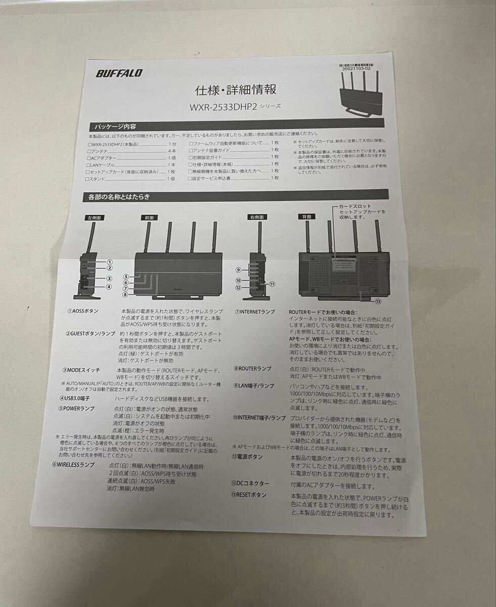 ・機種:11ac対応Wi-Fiルーター WXR-2533DHP2