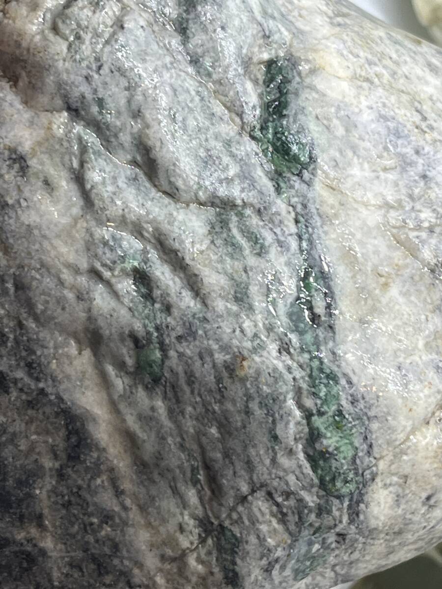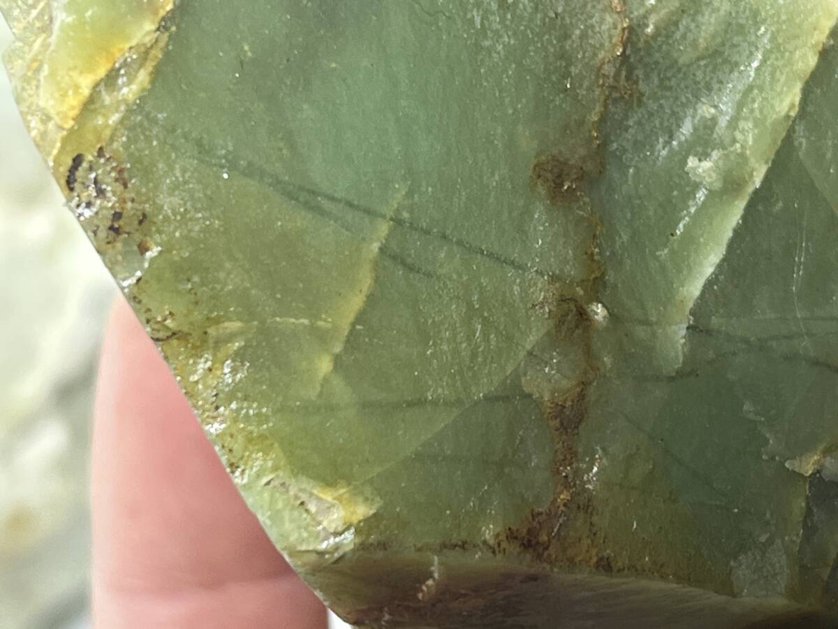 濃い緑色の部分は透過もあり、アクセサリー素材や鑑賞石として磨き上げれば、非常に美しい逸品になるかと思います。