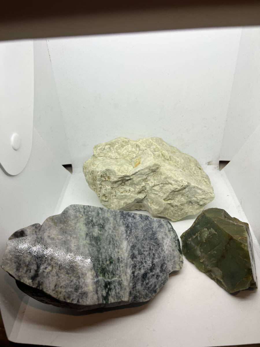 白地のものはところどころにミントグリーンの翠が入り、丸みがきで非常に美しい鑑賞石になるかと思います!