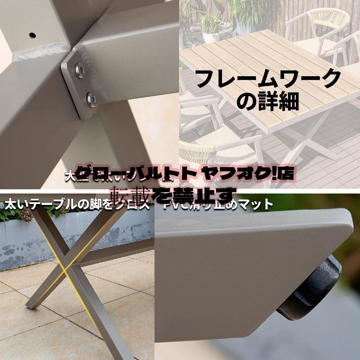 高品質の素材:屋外テーブルチェアセットテーブルはプラスチック製の木材とアルミニウム合金フレームで作られ、椅子はPE籐とアルミニウム合金フレームで作られています。アルミニウム合金フレームは強力な防錆性と耐腐食性を備えており、過酷な屋外条件でも長期使用を保証でき