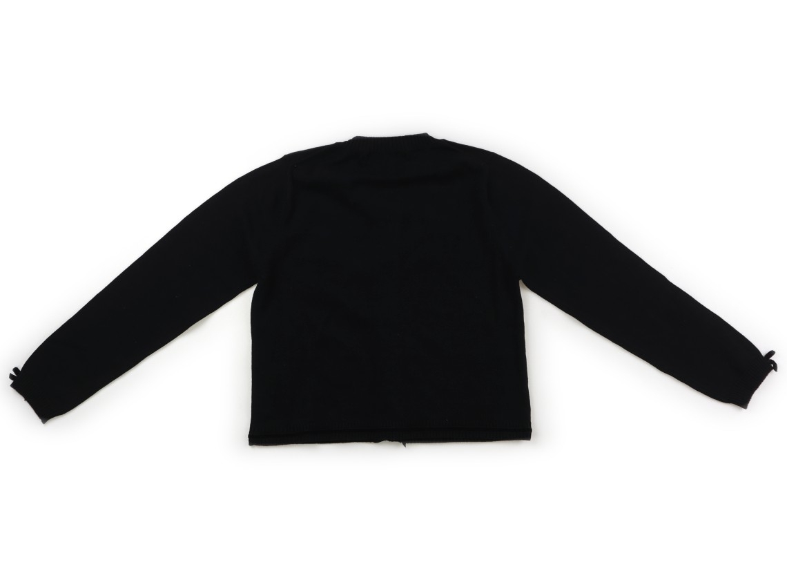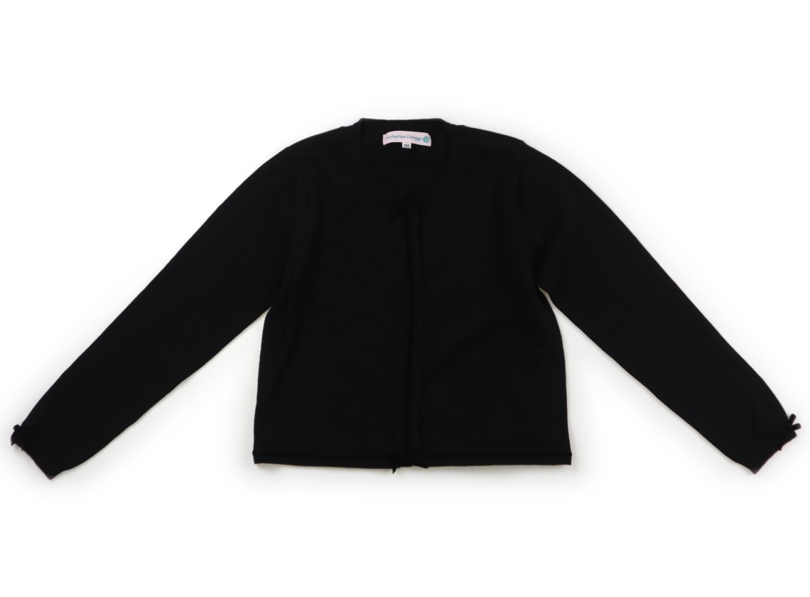 コットンニット。ボタンは隠れているデザイン。首元真ん中から、左右の裾にかけてベロアのラインとリボン装飾デザイン。少しほこり付着があります。まだまだ活躍してくれそうです。
