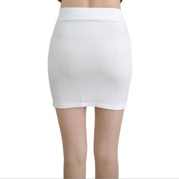 タイトミニスカート ストレッチ 無地 膝上 レディース ウエストゴム 美脚 ひざ上 フリーサイズ ホワイト