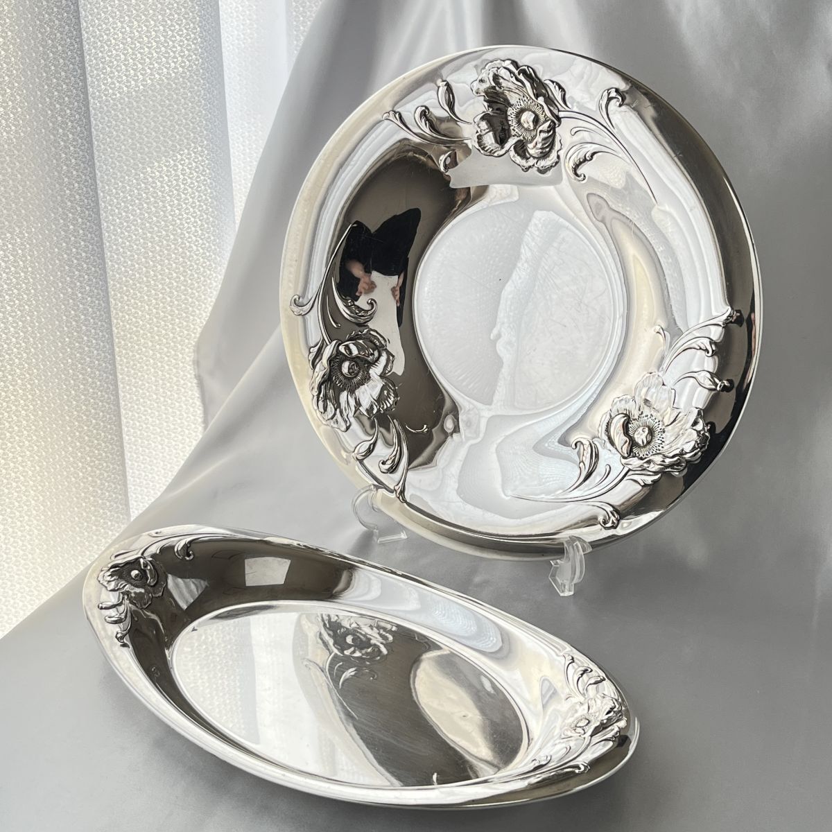 【ONEIDA】ポピーのレリーフ サンドウィッチプレート / パストリープレート【シルバープレート】