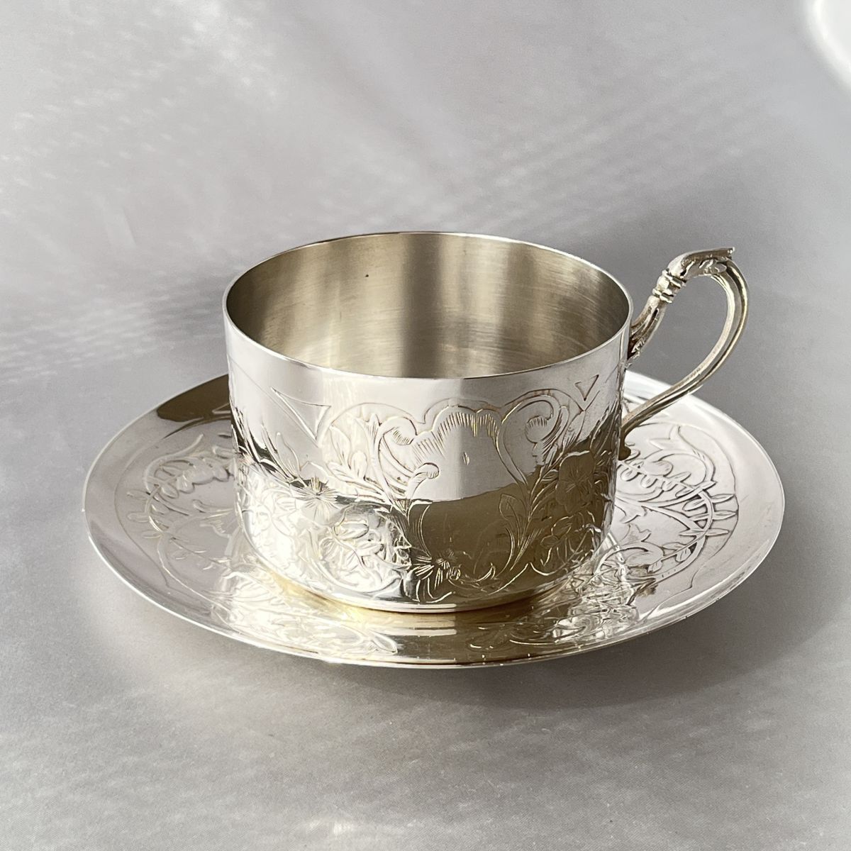 【 仏蘭西】アールヌーボー カップ&ソーサー 【シルバープレート】
