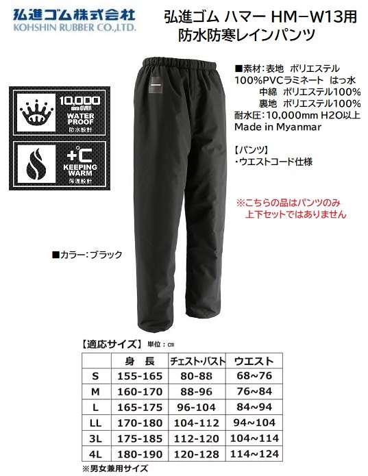 弘進ゴム ハマー 防水防寒レインパンツ HM-13W用を 特別価格にて提供します