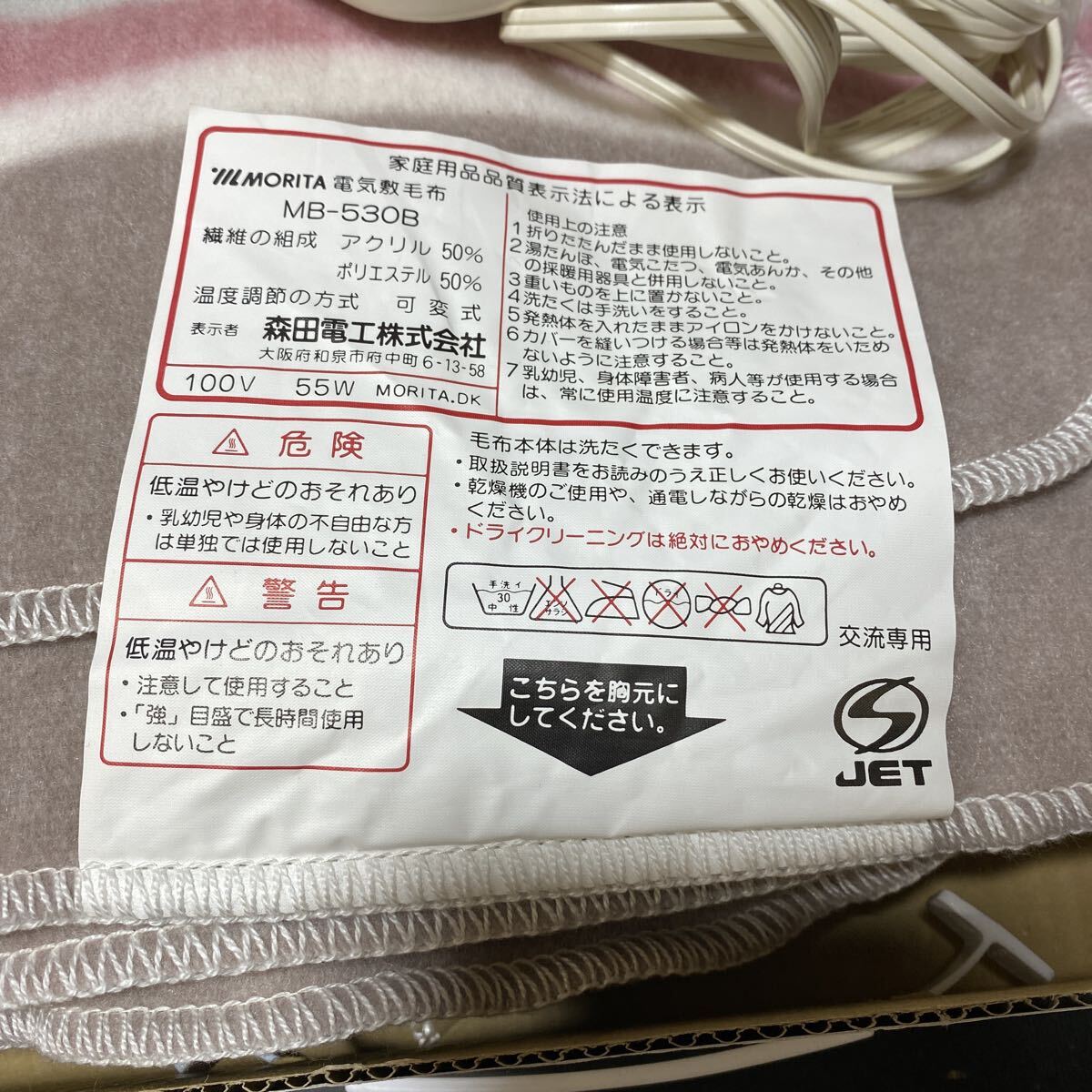 N 6844 中古品[ MORITA 電気毛布 MB-530B ] シングルサイズ 動作確認済み 敷毛布 寝具 防寒 あったか ブラウン×ピンク 保管品