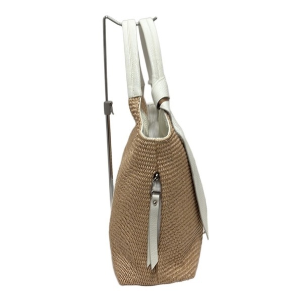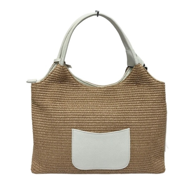 ギンザカネマツ GINZA Kanematsu ハンドバッグ - コットン、レザー ライトブラウン×白×マルチ 編み込み 美品 バッグ