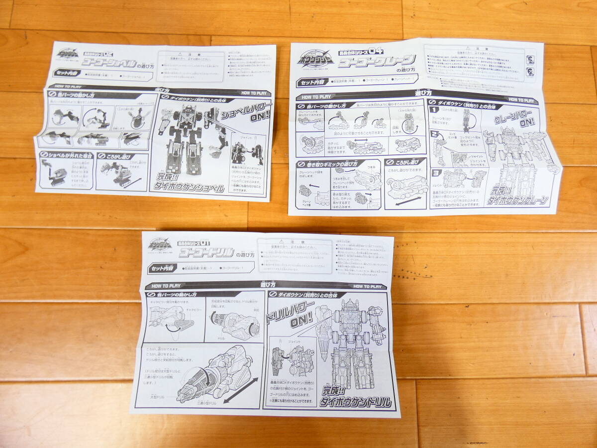 | 【◎当時もの バンダイ 轟轟戦隊ボウケンジャー 合体ロボ玩具 轟轟合体シリーズ ゴーゴードリル/ゴーゴーショベル/ゴーゴークレーン 3点セット まとめて 箱付き 2006年 スーパー戦隊シリーズ/第30作 @60(10)】 ※基本的に金曜午後、土曜、日曜はオークションに関する連絡、発送等全般の対応は行っておりません。翌月曜日から順番になります。対応が遅れる場合が御座います。予め御了承下さい。 (金曜日終了日分の場合も翌月曜から対応です。) ※一番下の「ご注意事項」まで全てお読みになり、ご検討、ご入札をお願い致します。 ■状態:当方が購入、使用、保管していたものではありませんので、購入時期や使用回数、保管期間・状態などの詳細分かりかねます。 USED品です。使用感あります。付属品は取扱説明書、箱です。全体的に目立った傷や汚れはありません。箱に破れやへこみ、汚れがあります。なお当方こちらの商品知識が無い為、専門的な質問等はお答え出来かねますことご了承下さい。画像が撮影状態などにより実物の色調との相違があります。現状品渡しとなりますので状態に敏感な方及び完全美品コレクターの方は入札をご遠慮下さい。商品到着時説明に無い不具合や傷みなどがありましても返品・返金は一切お受けできかねますので入札した時点で同意とし取引させて頂きます。発送は梱包などせず、直接ダンボールに入れて発送させて頂きます。発送中の破損等の保証も致しかねますのでご了承の上宜しくお願い致します。 ※出品物、付属品に関しては画像にてご確認いただけるものが全てとなっております。 ※タイトル最後尾の()内は当方の番号です。 素人の目視確認の為、見落としがある場合もございます。 クリーニングはあくまでも簡易的なため、細かな汚れやホコリが付着した状態でお渡しする場合もございます。 ■元払い 発送予定サイズ 60サイズ ※送料は下記に記載しております。該当するサイズの欄をご参照下さい。 ※タイトルの『@』後の数字は目安の梱包サイズです。 未梱包の為あくまでも目安です。 ※梱包サイズは誤差が生じる場合がございますが、あくまでも出品時に記載したサイズで送料をご請求させて頂いております。 必ず送料を下記の表にて御確認の上、御検討、御入札をお願い致します。 ※お支払いはかんたん決済のみになります。 ※同梱に関しましては同日終了日分(同梱可能サイズ160 / 23㎏迄)のみとさせて頂きます。 送料は同梱サイズにより変動致します。 ゆうパック取り扱い不可商品との同梱の場合は佐川急便での配送となります。 ※配送業者、発送方法の変更は承れませんのでご了承願います。 ※送料は下記に記載しております。該当するサイズ、地域の欄をご参照下さい。 ※下記の【ご注意事項】を御覧頂き、御了承、御理解の上御入札、御検討を御願い致します。 |