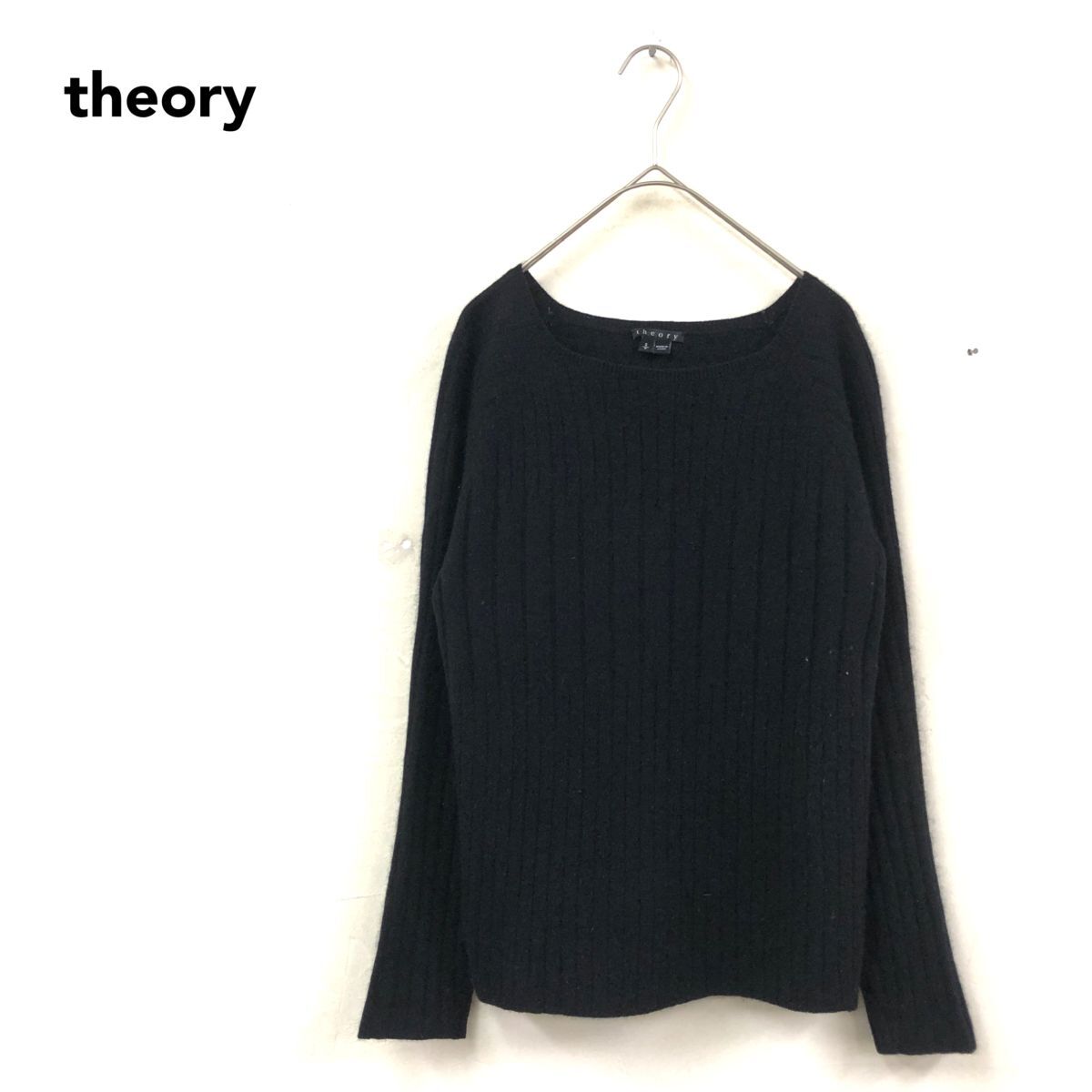 2N1438-Q◆カシミヤ100◆theory セオリー 長袖セーター ニット トップス 無地 シンプル キレイめ レディース 秋冬◆size S 黒 ブラック