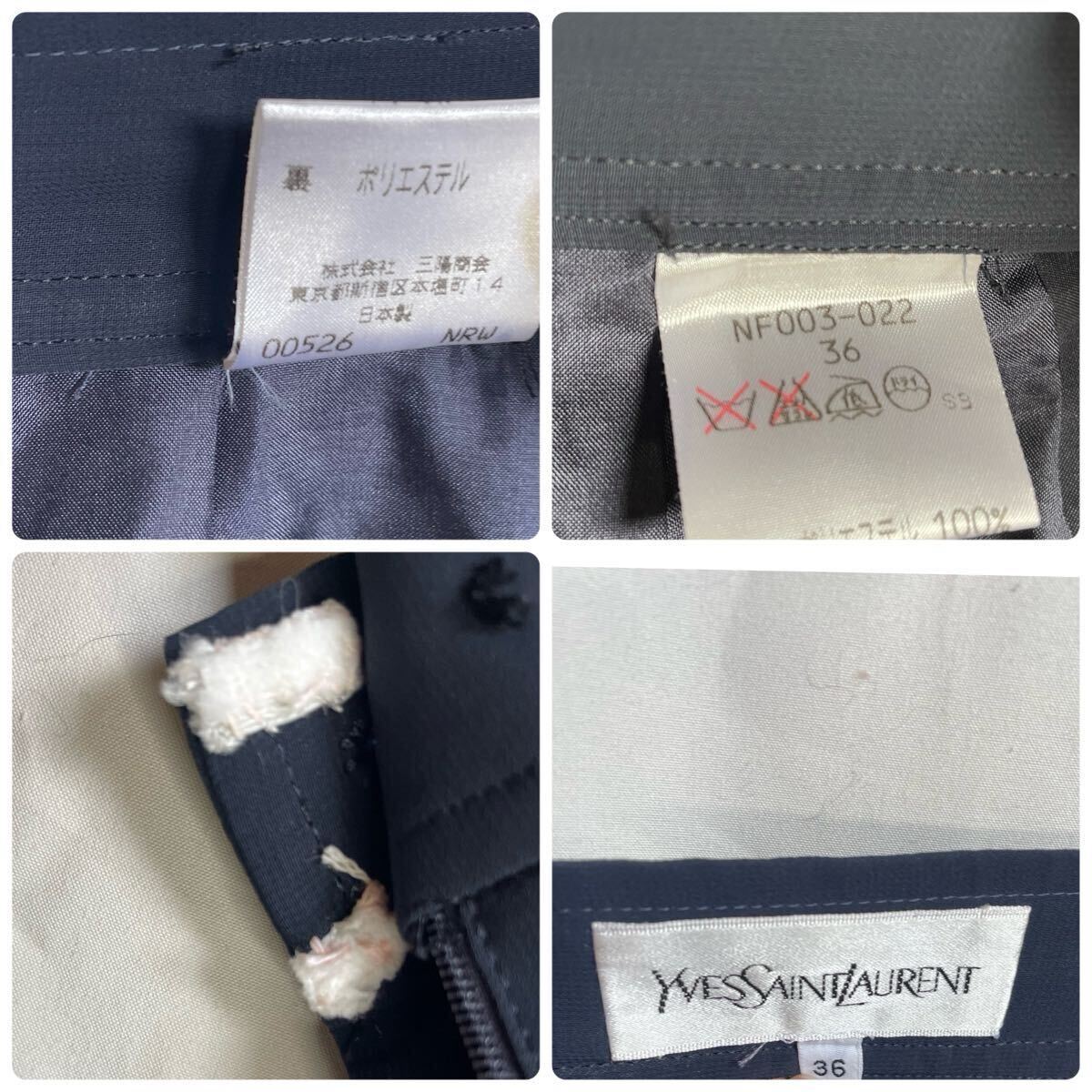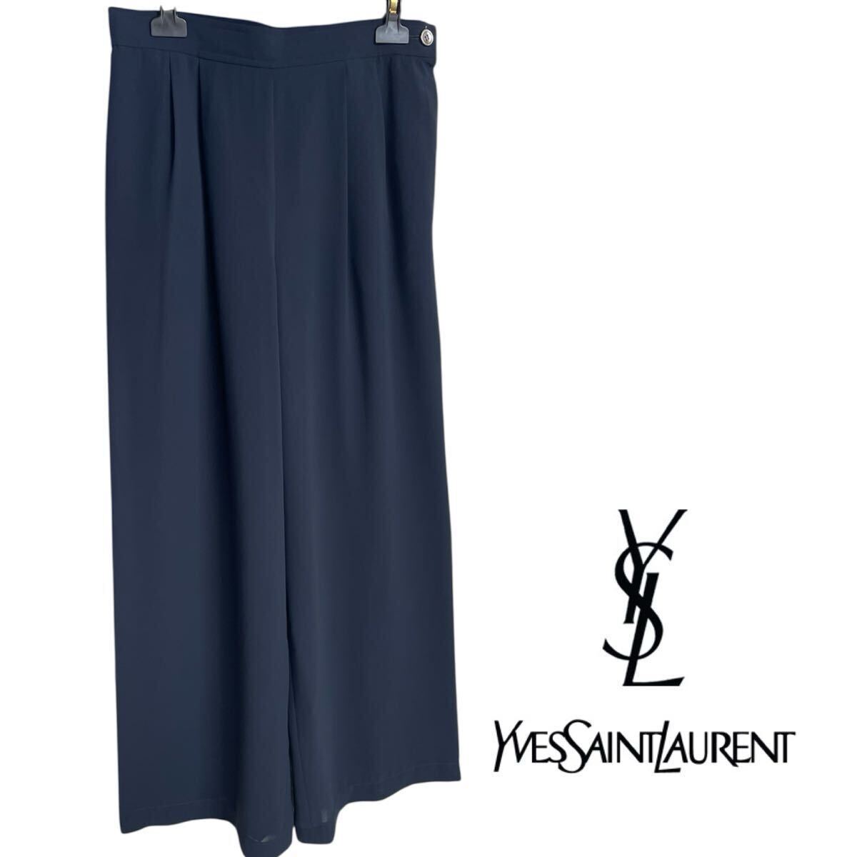 上品なネイビーカラーのイヴ・サンローランのワイドパンツです。