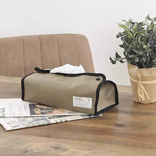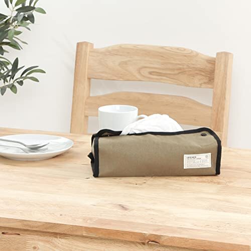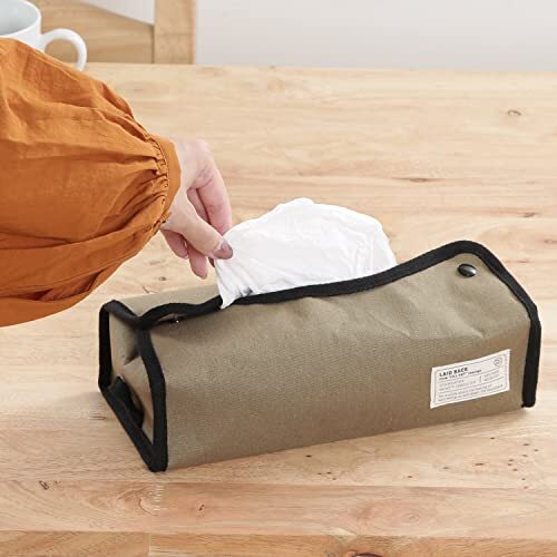 不二貿易(Fujiboeki) ティッシュケース カバー 幅27.5×奥行11×高さ6.5cm カーキ レギュラーサイズ対応 吊り下げ可能 LA