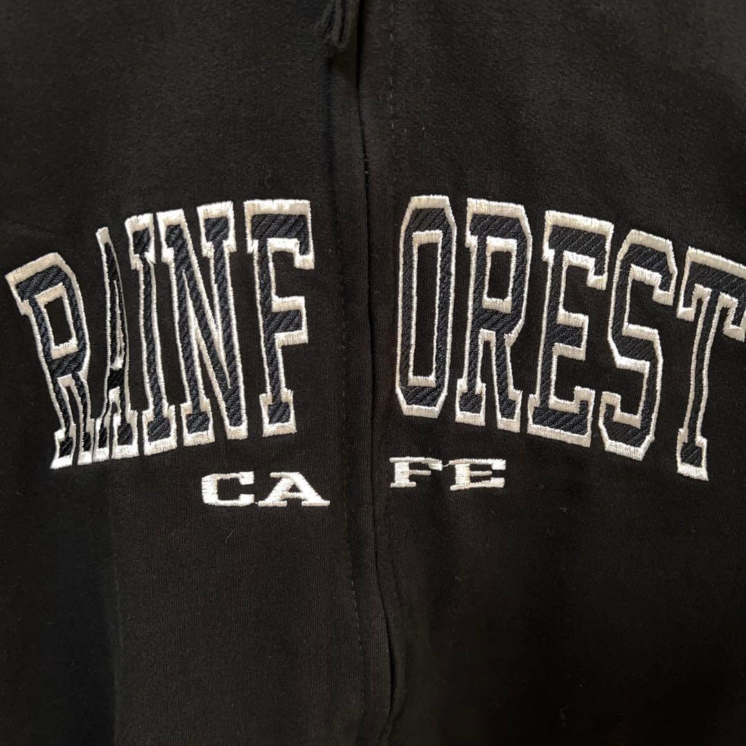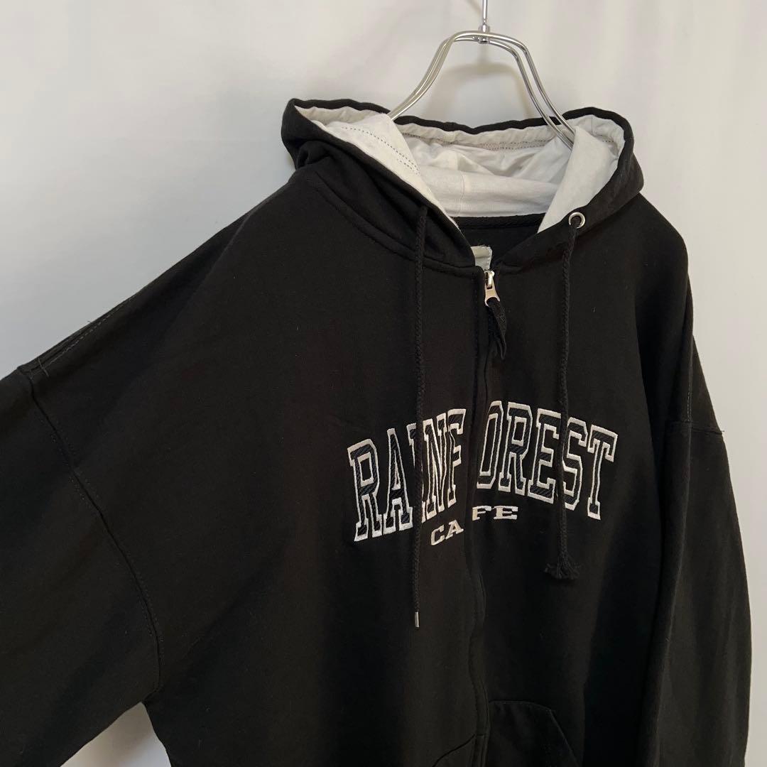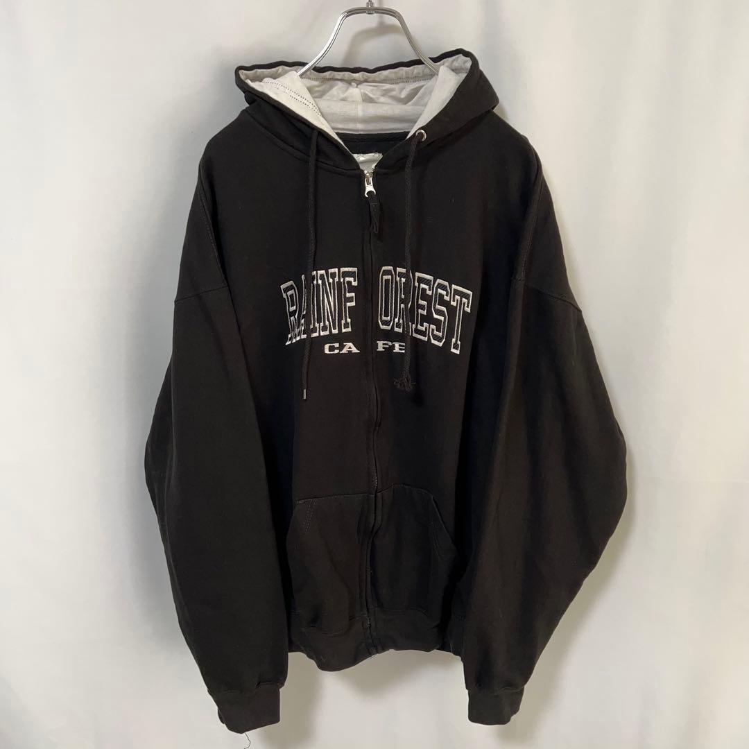 □タイプ:スウェットパーカー プルオーバー ビッグシルエット オーバーサイズ フルジップ 大きいサイズ 米国サイズ ゆるダボ 企業ロゴ 刺繍 RAINFOREST レインフォレストカフェ