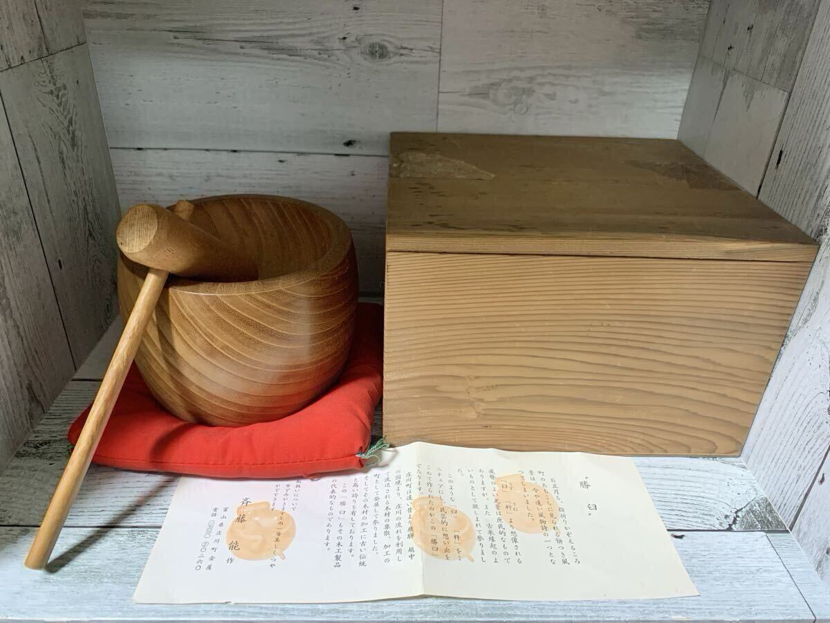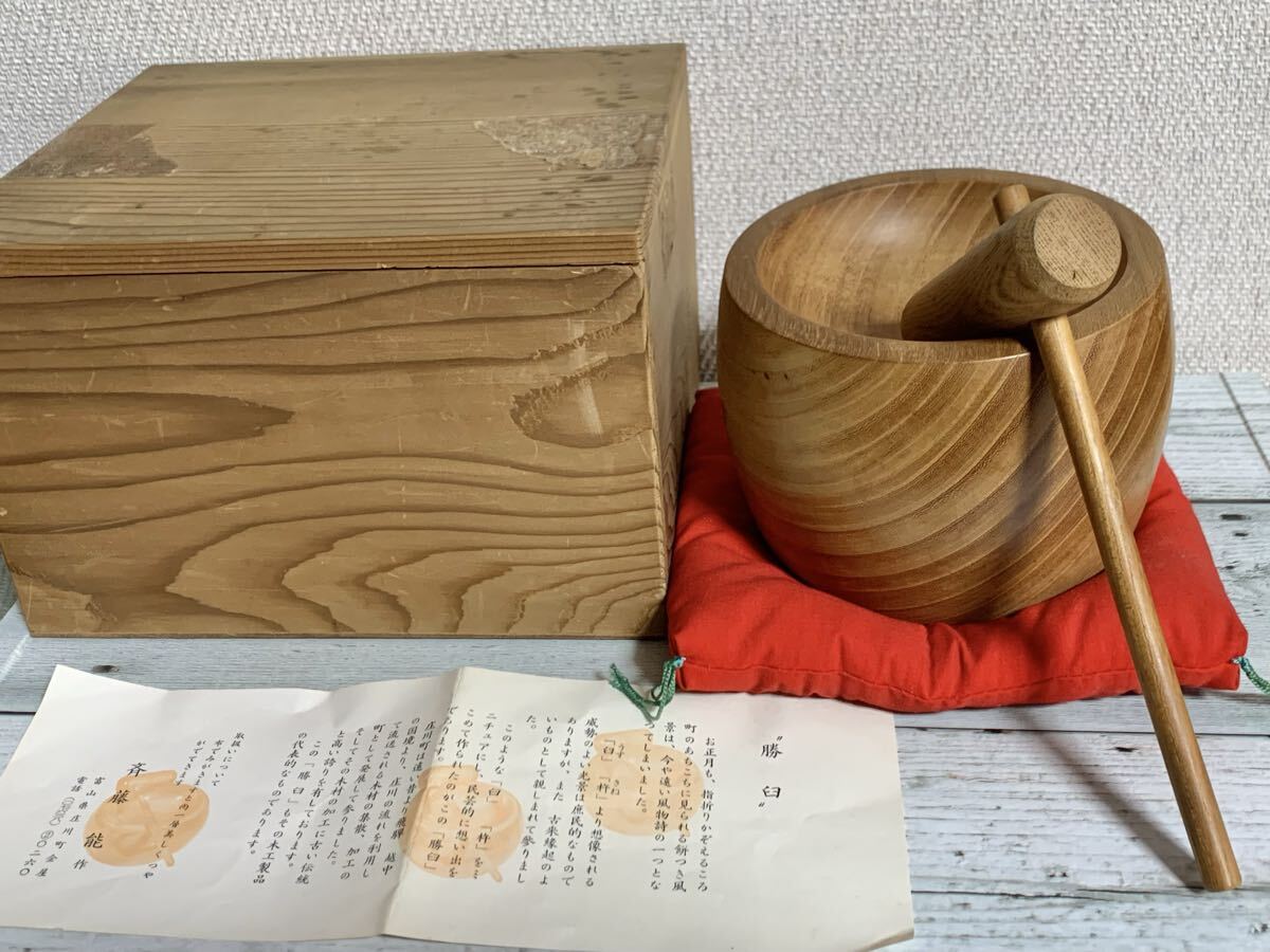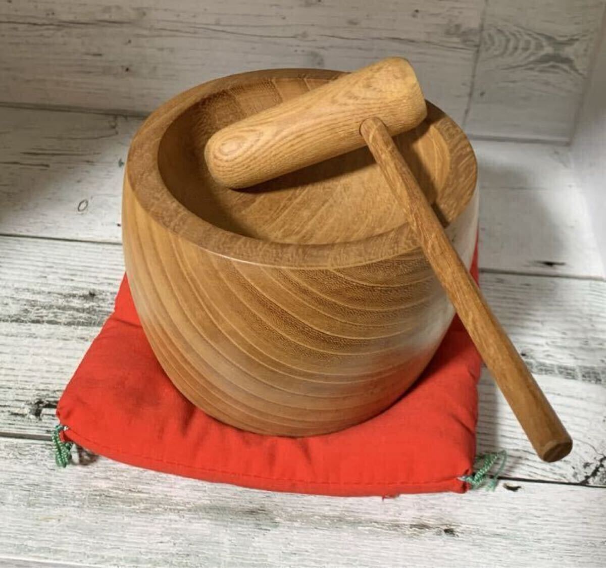餅つきの臼と杵をミニチュアにした木工工芸品です。