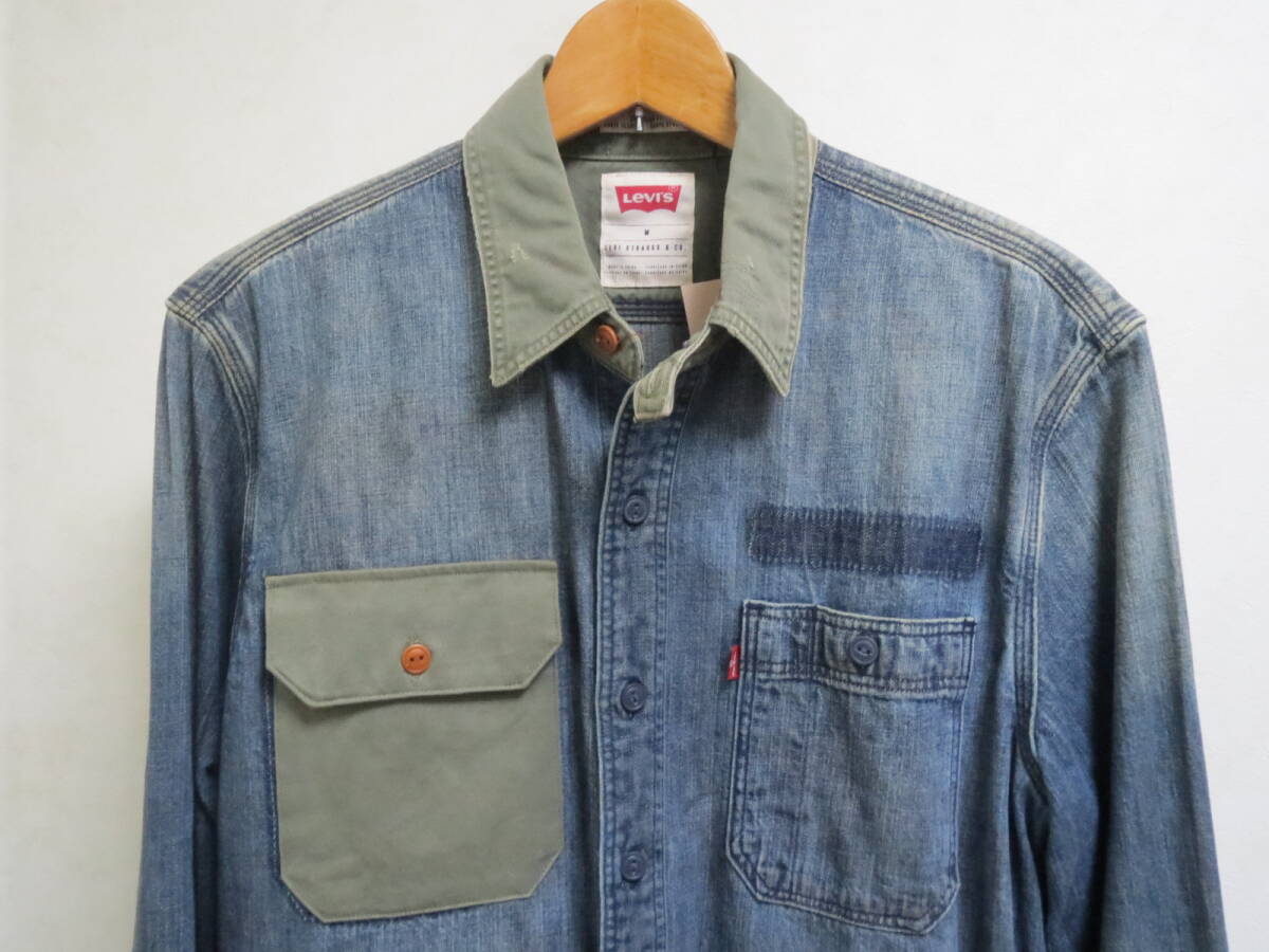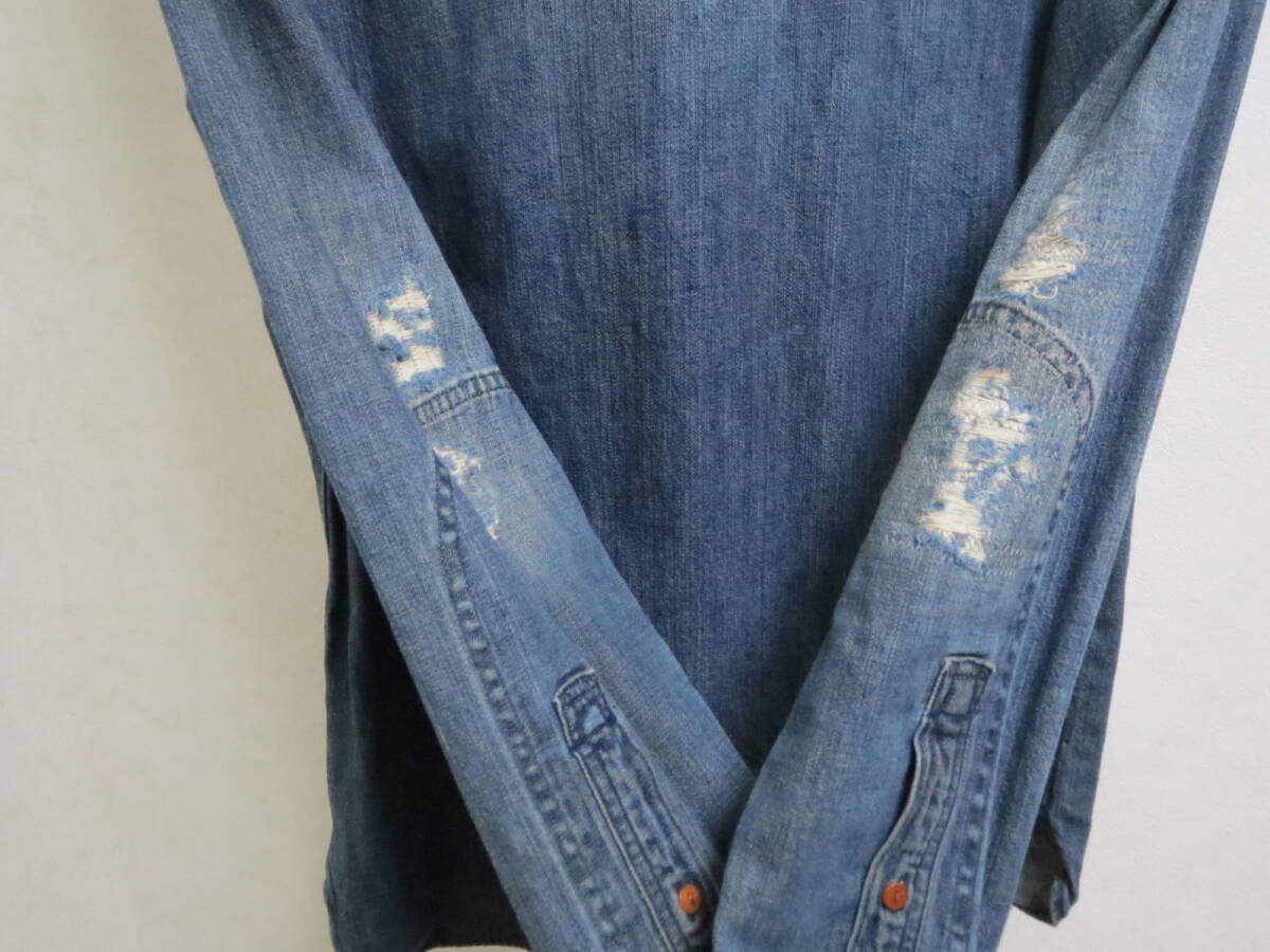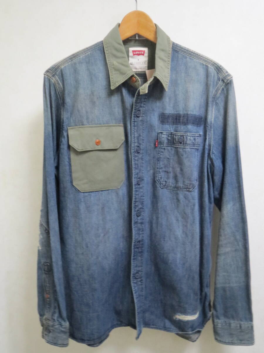 Levi's リーバイス ダメージ加工 ストック ワーク 長袖 デニム シャツ 65822-0053 サイズ M(日本標準Lサイズ)