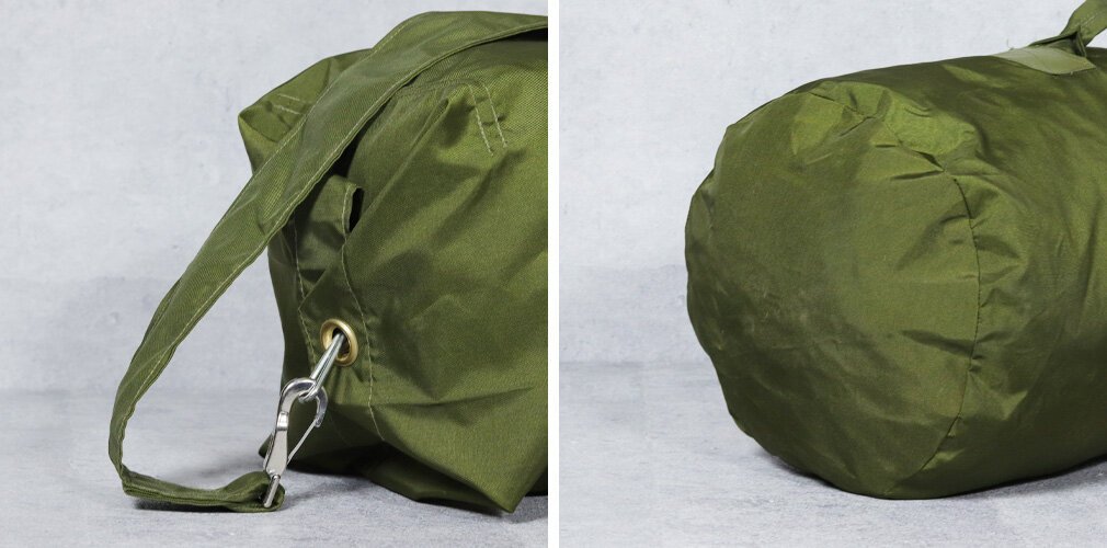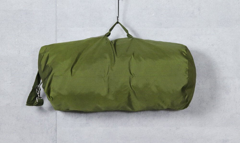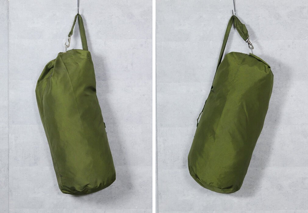 4枚目までの写真は流用です。ノルウェー軍にて採用されていたナイロン地のダッフルバッグです。 容量も十分あり、ボストンバッグとしても使える2WAYバッグになります。 キャンプなどのアウトドアなシーンからランドリーバッグとしてなど使い方も様々です。 サイズ:サイズ:高さ約70cm 直径約28cm程度です。紐を使わずに金具で口を絞るタイプです。 素材:薄手のナイロンでコンパクトになります。 沖縄離島を除く全国500円でお送りいたします、落札価格にプラスでお願いいたします。キャンプ用品