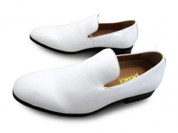 1円~L917新品Dedesプレーントゥ/ヴァンプスリッポン25㌢艶白♂