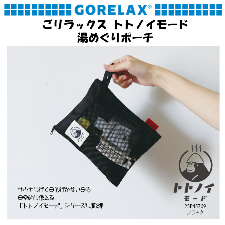 ごリラックス 湯めぐりポーチ ブラック GORELAX ごりらっくす ゴリラックス 撥水加工 トトノイモード バス サ活 お風呂 サウナ 銭湯 温泉 岩盤浴