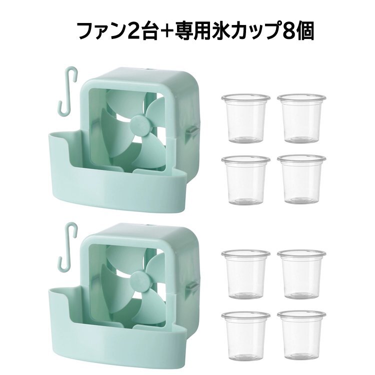 ◆ミストファン 2個セット 吊り下げ式 冷風扇 アイスボックス 猛暑対策 涼感グッズ ポータブル 軽量 簡単設置 扇風機アクセサリー 氷カップ付き 電源不要 設置簡単 FMSTS2
