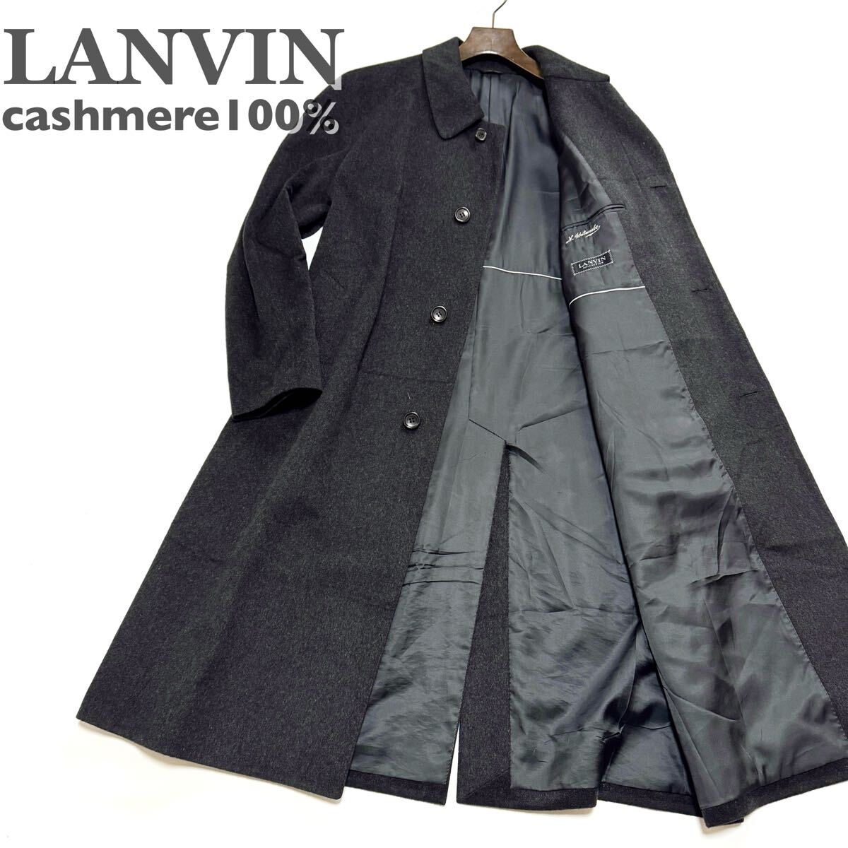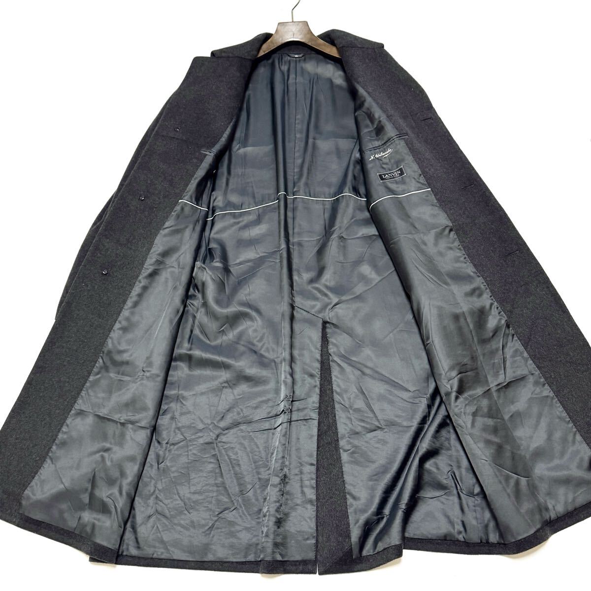 【極美品/カシミヤ100%/3L】 ランバン LANVIN ロングコート ステンカラーコート 着丈110cm越え 日本製 チャコールグレー ロング丈 高級