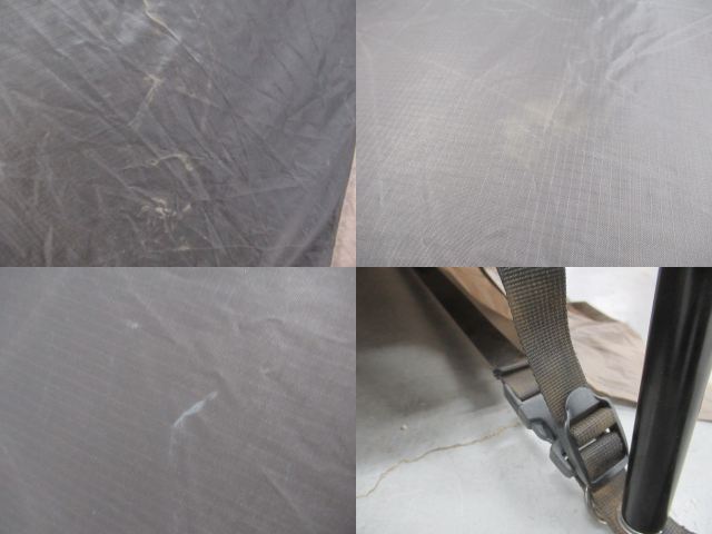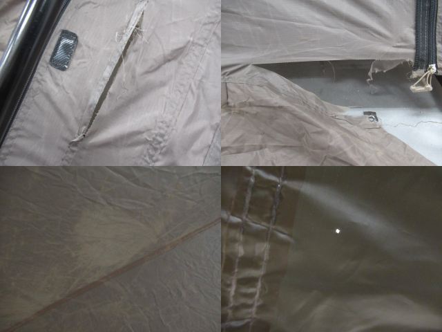 土汚れあり・右側面ループ部分に破れあり(これによりループが使えず、ロープが張れません)・左側面スカート部分に破れあり・天井部分に小穴あり