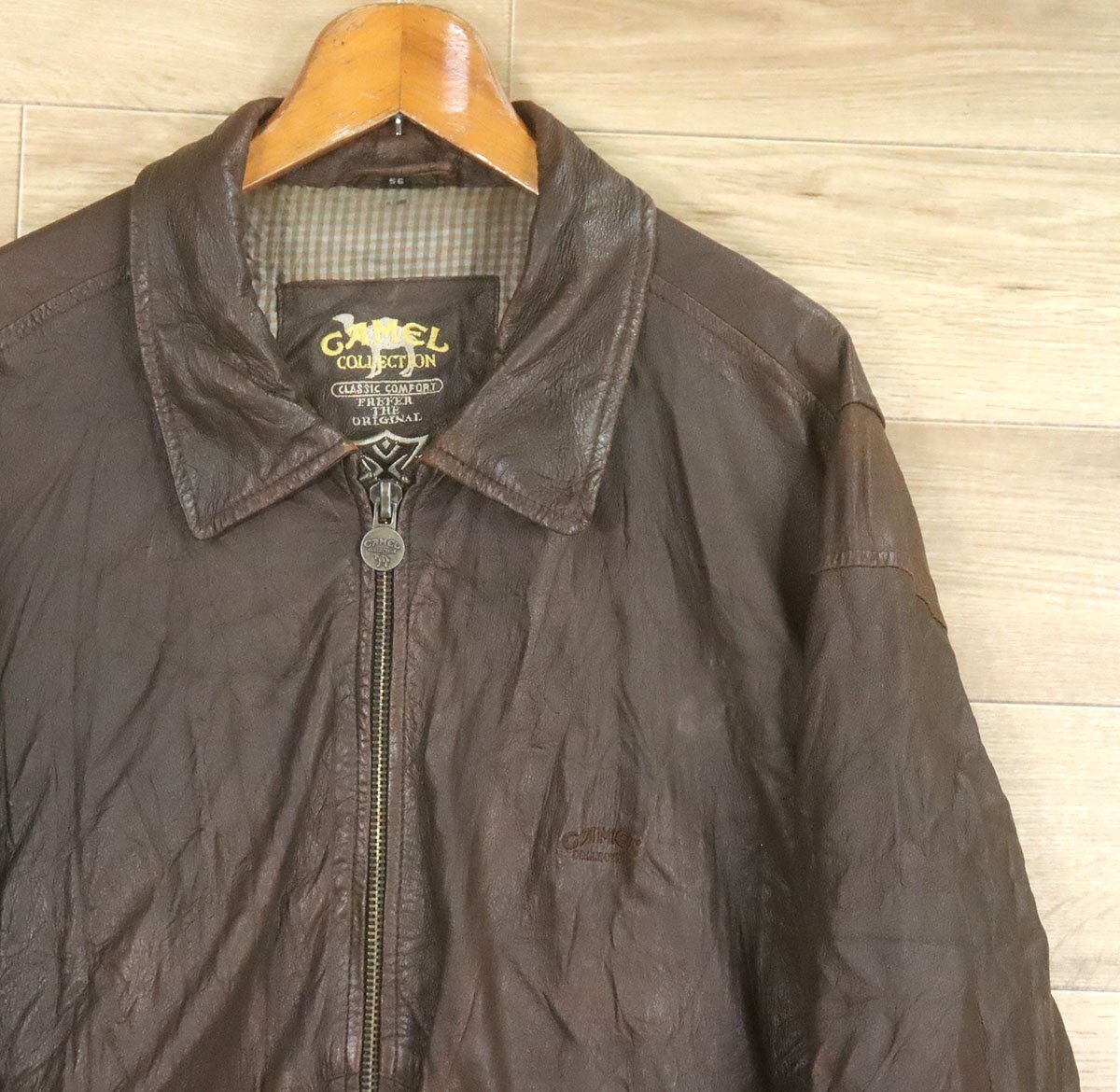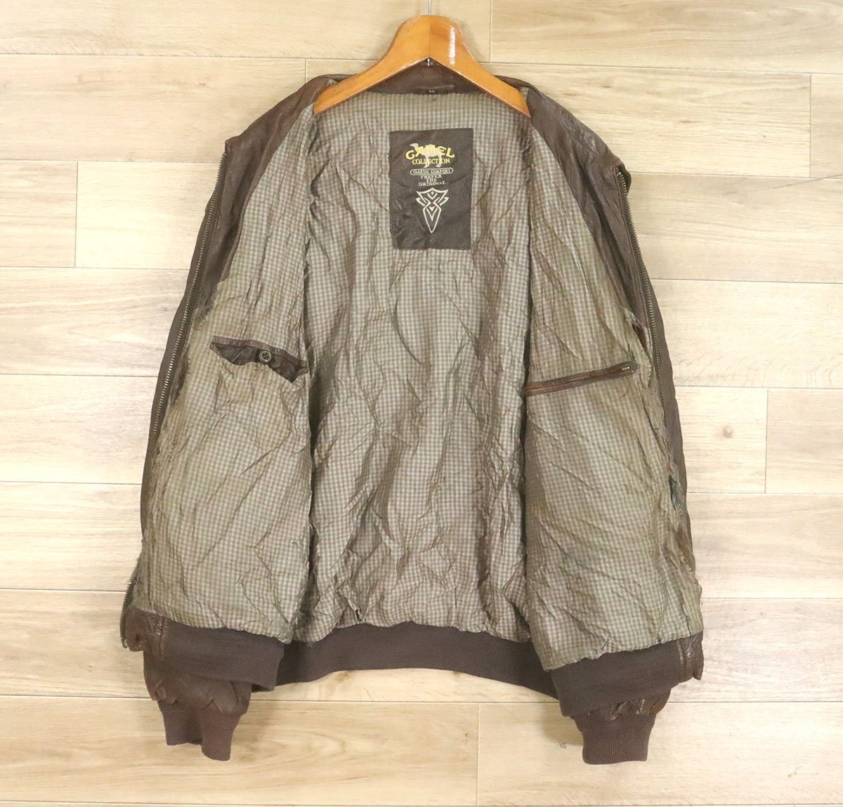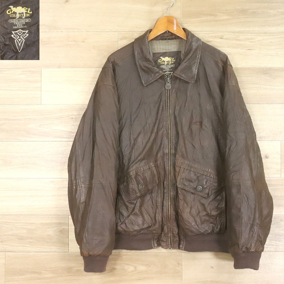 A3S/O9.16-9 CANEL COLLECTION レザージャケット 本革 ボンバージャケット 革ジャン 皮ジャン メンズ 56 ダークブラウン 古着