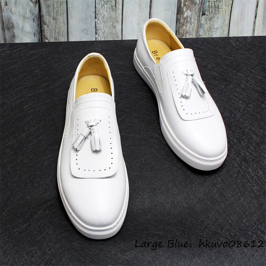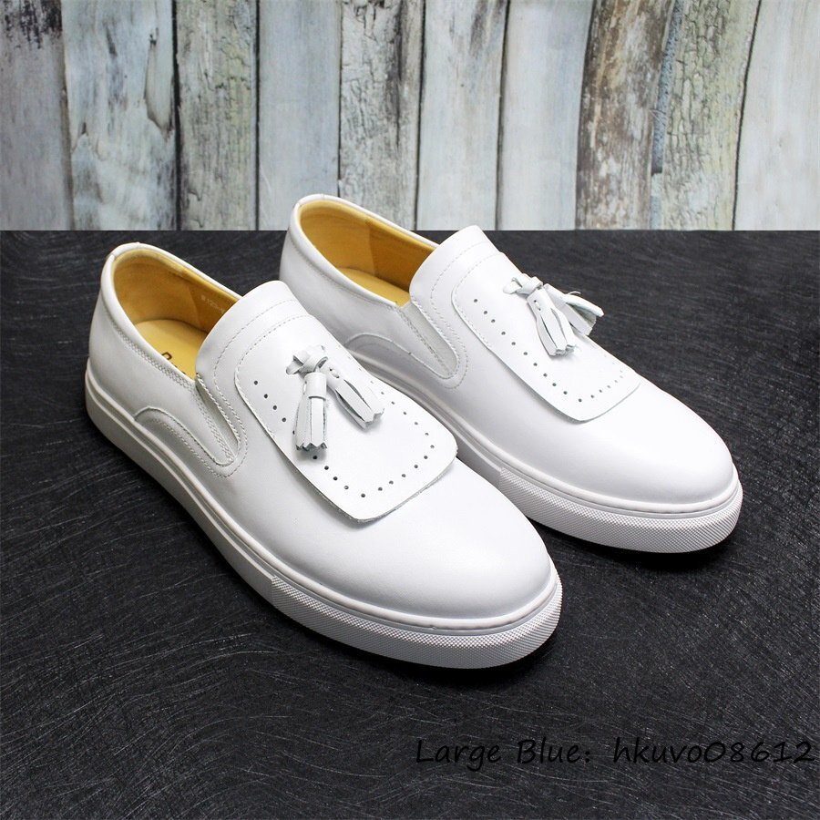 最高級★定価9万超 メンズ スリッポン 新品 本革 ビジネスシューズ 職人手作り レザーシューズ ローファー 牛革 紳士靴 ホワイト 28.0cm