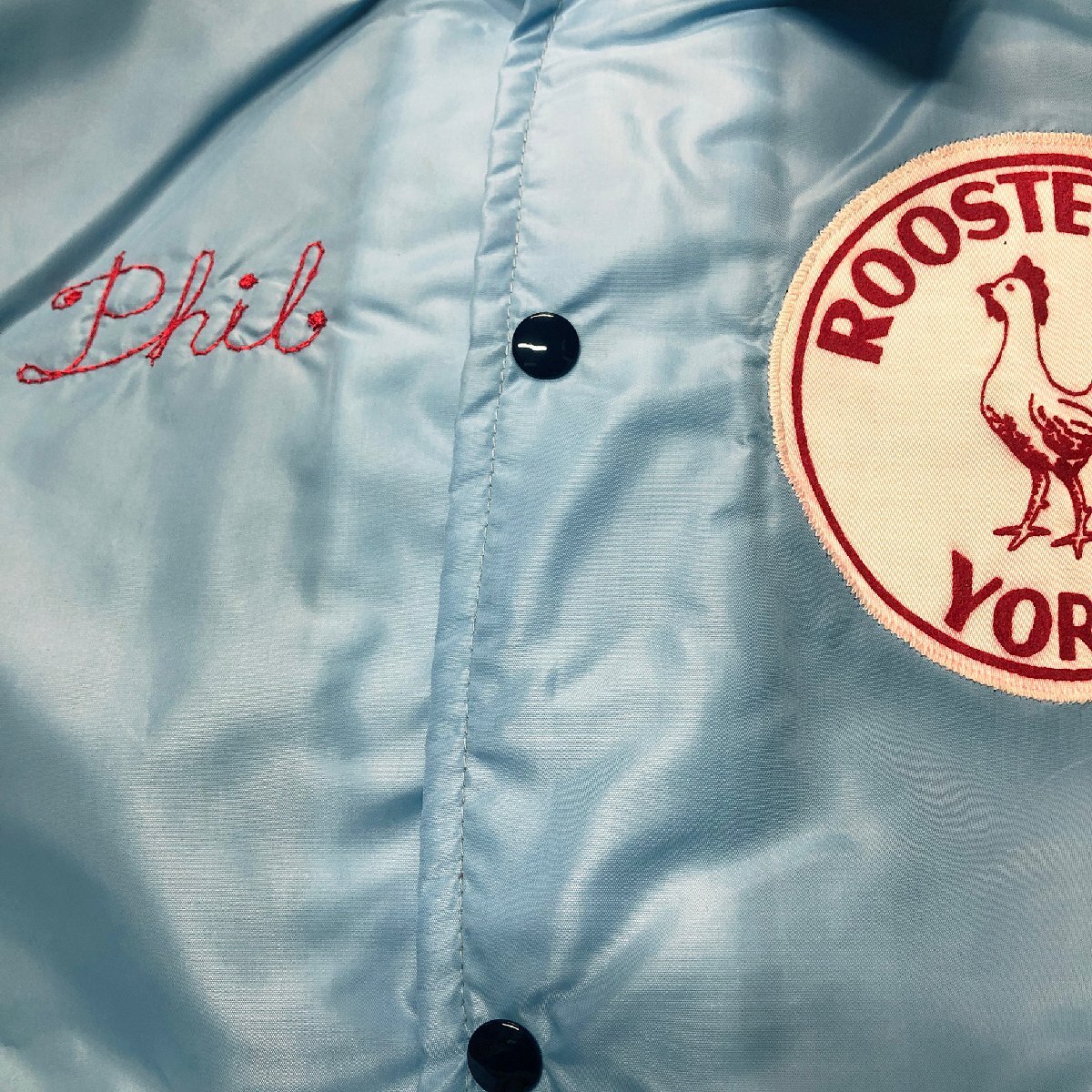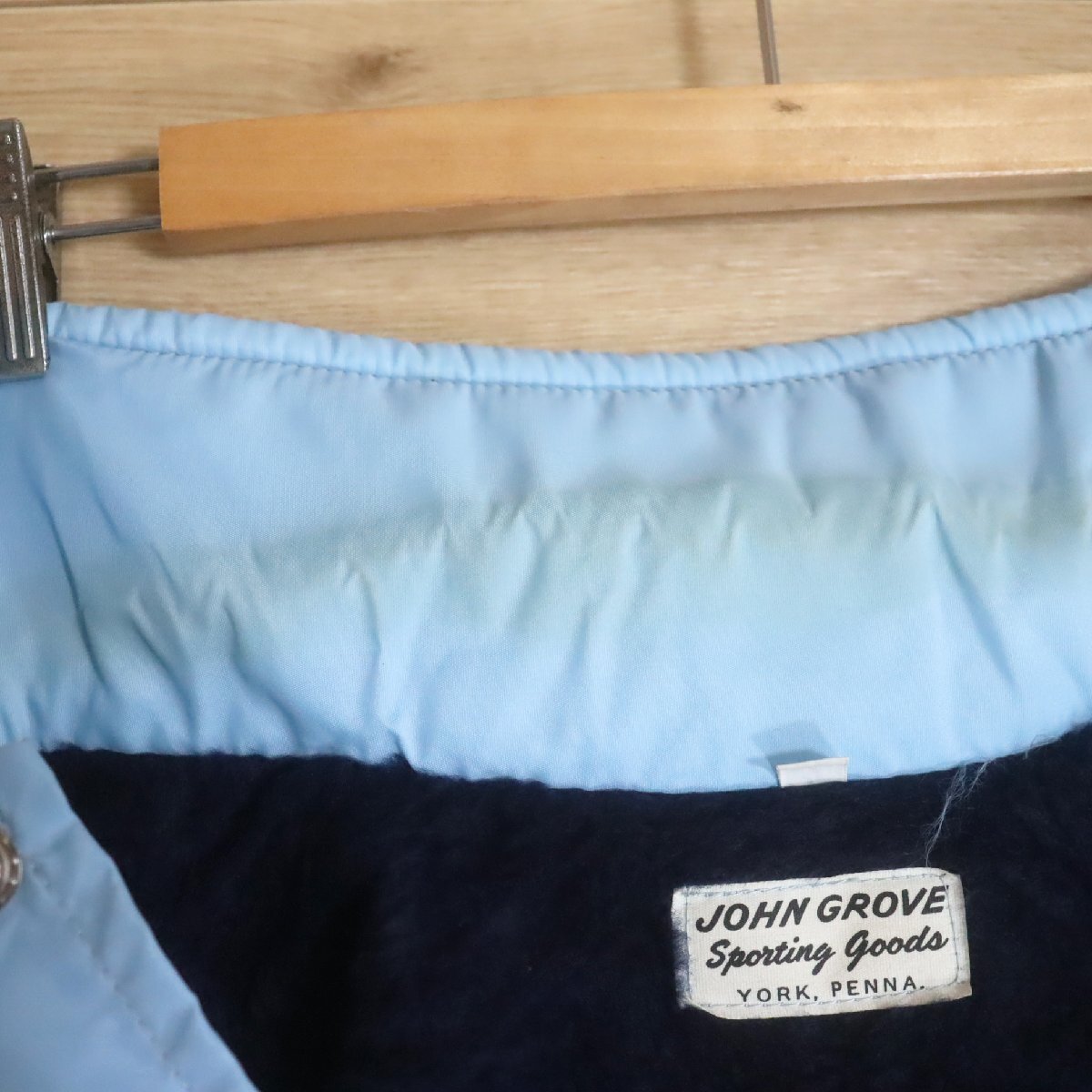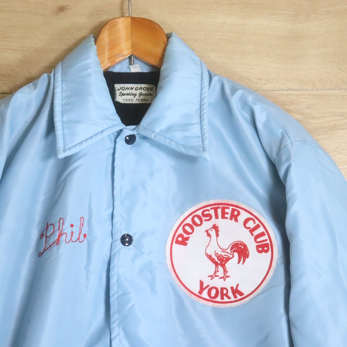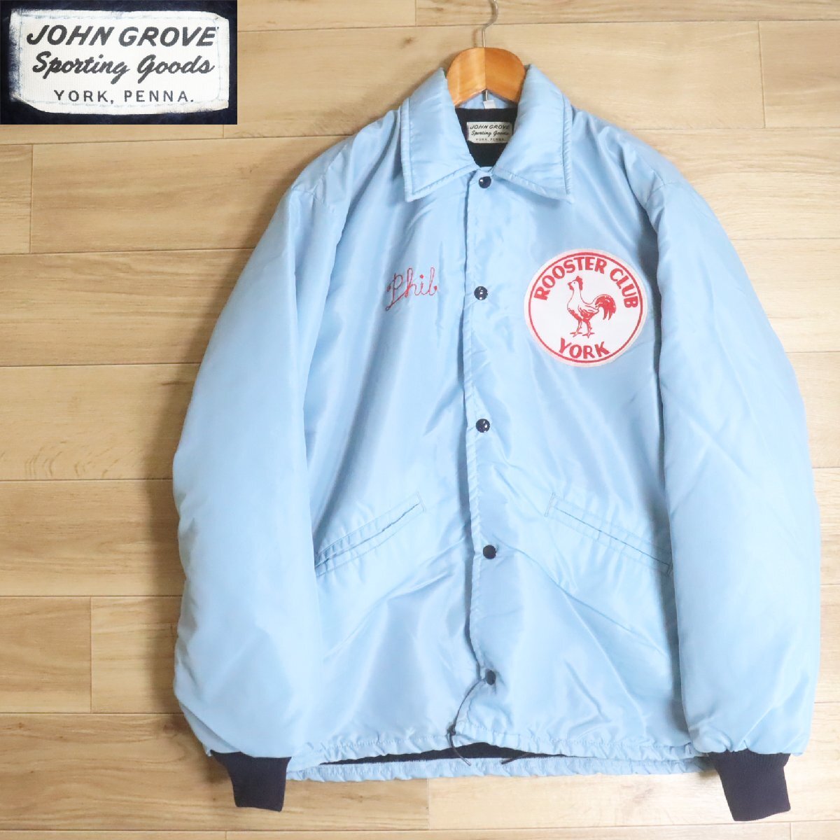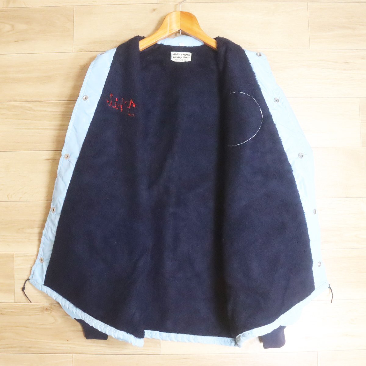 \5O/R6.12-5 JOHN GROVE コーチジャケット 刺繍 ワッペン 裏ボア アメリカ古着 ジャンパー ブルゾン メンズ L ライトブルー系